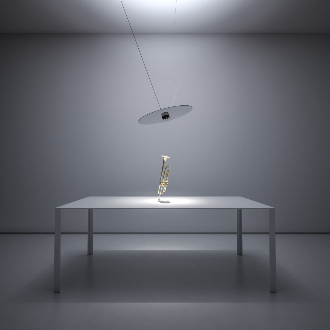 A thin, circular mirror is suspended to provide soft and soothing light, combining both direct and indirect lighting. A homage to one of the founders of modern optics. A sophisticated clamping system is used to position the disc wherever you want, without the need for wall or ceiling wires.