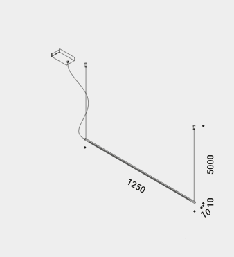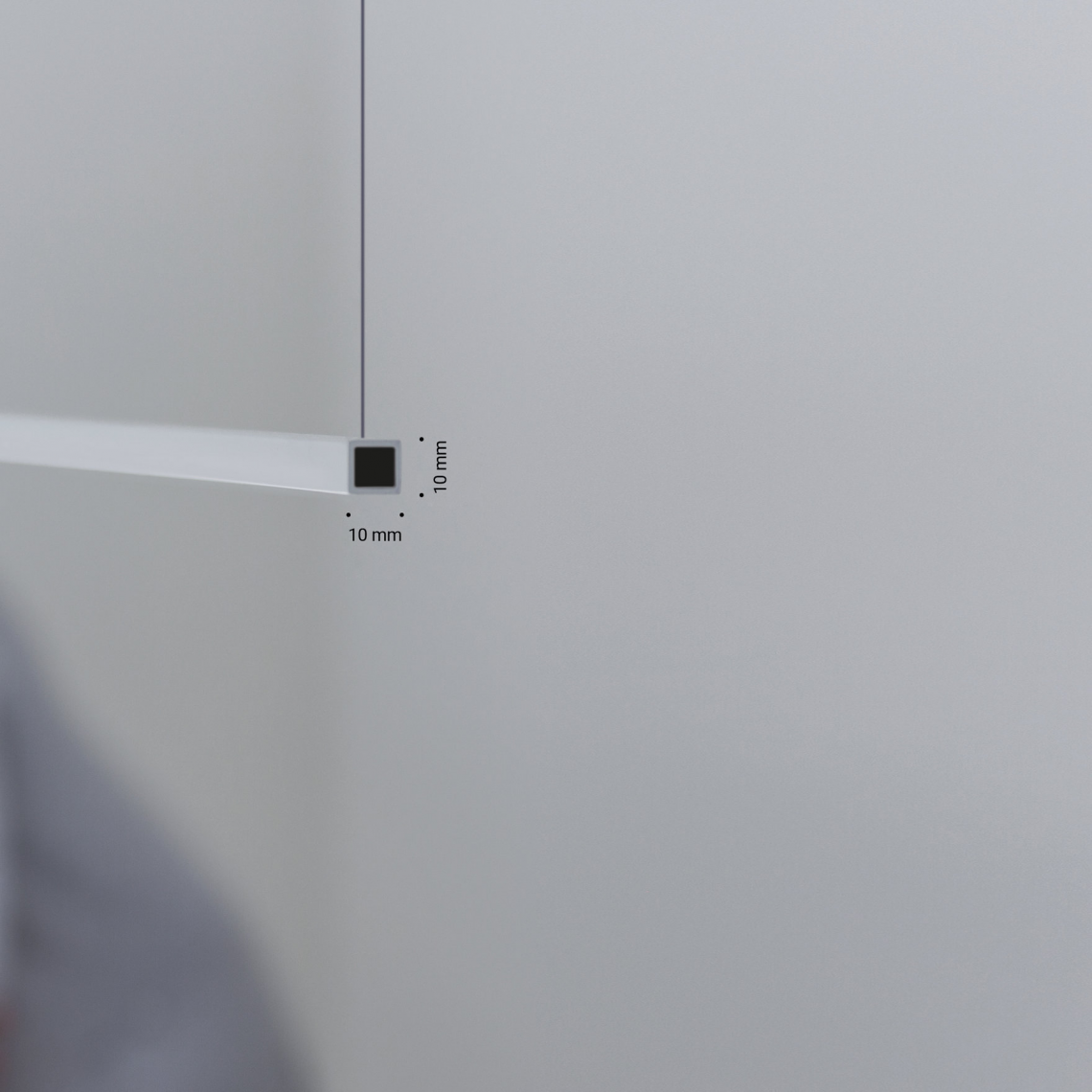A suspended luminous segment. Beautiful by itself or in composition. Suitable for working area or kitchen.