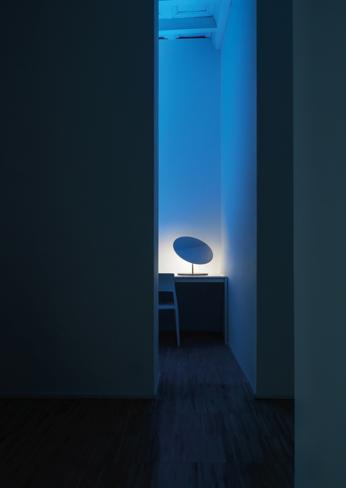 Full and empty, shadow and light. Working by subtraction to create a clear and sinuous geometry of underlined absences. Asymmetry is the key. It’s the turning point of a lamp that generates different effects according to how it is positioned