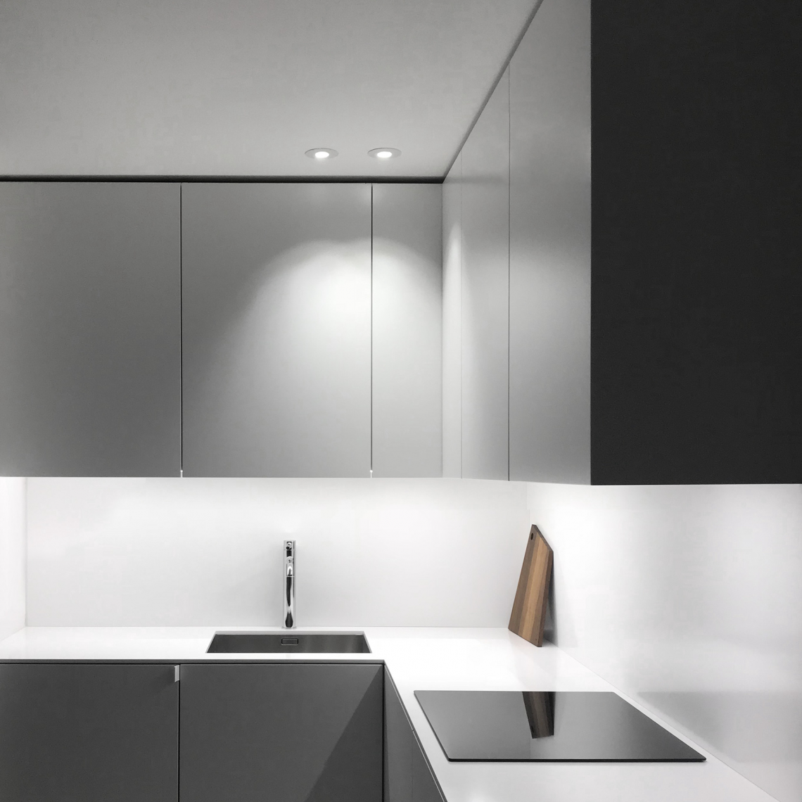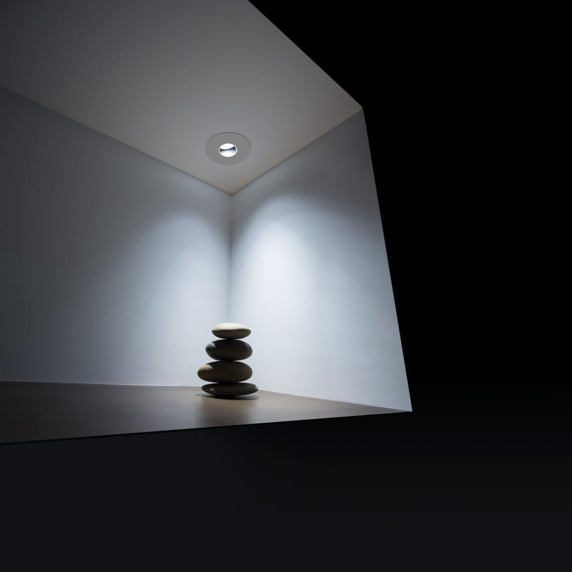 The luminaire is pure form, a simple container for the light source. Light is incorporated into the space, becoming an architectural element.