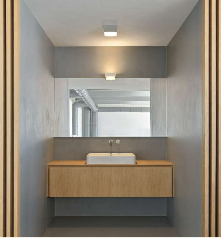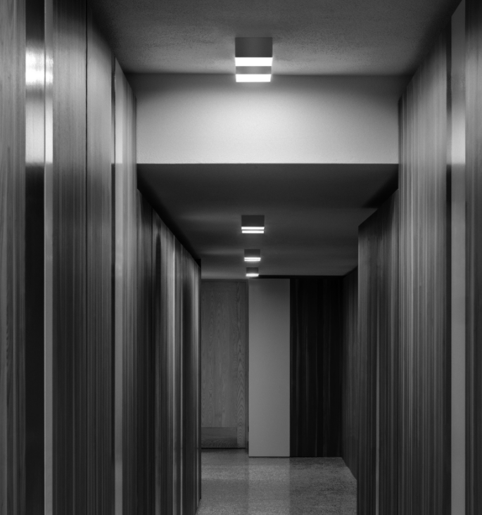 The luminaire is pure form, a simple container for the light source. Light is incorporated into the space, becoming an architectural element.