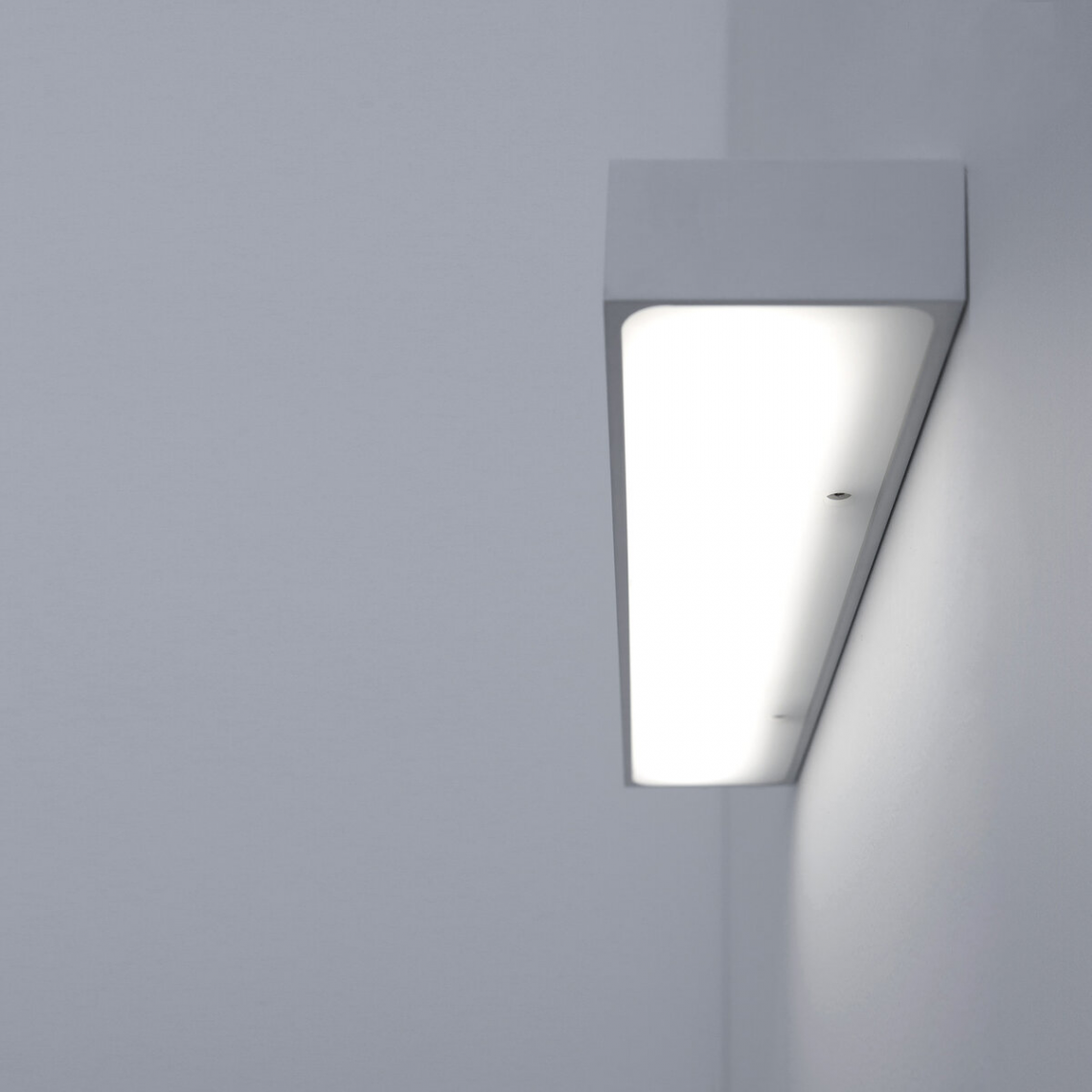 The luminaire is pure form, a simple container for the light source. Single-emission lamp with light directed downwards. Light is incorporated into the space, becoming an architectural element.