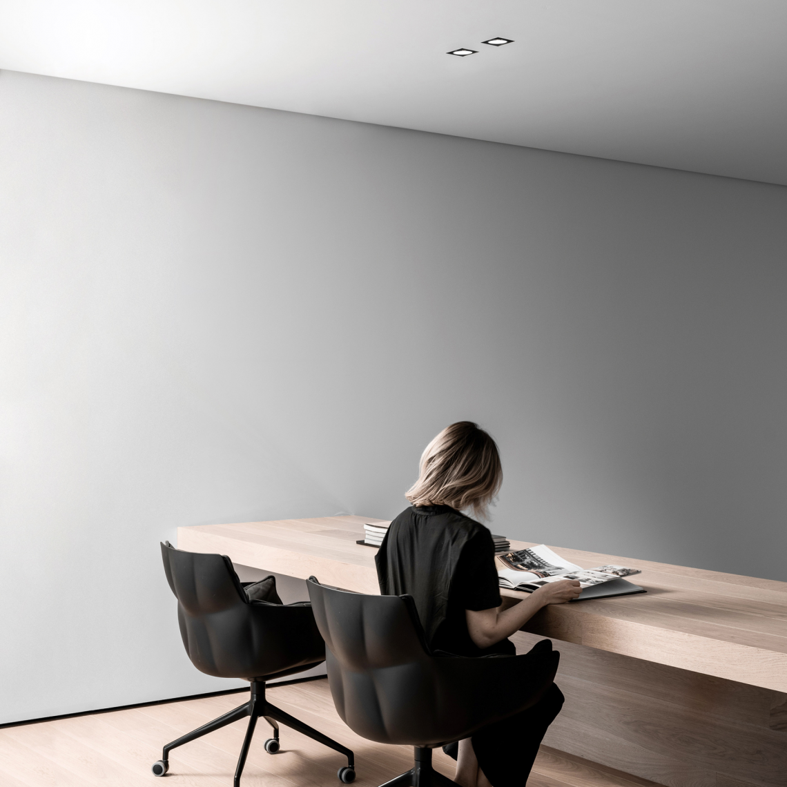 The luminaire is pure form, a simple container for the light source. Light is incorporated into the space, becoming an architectural element.