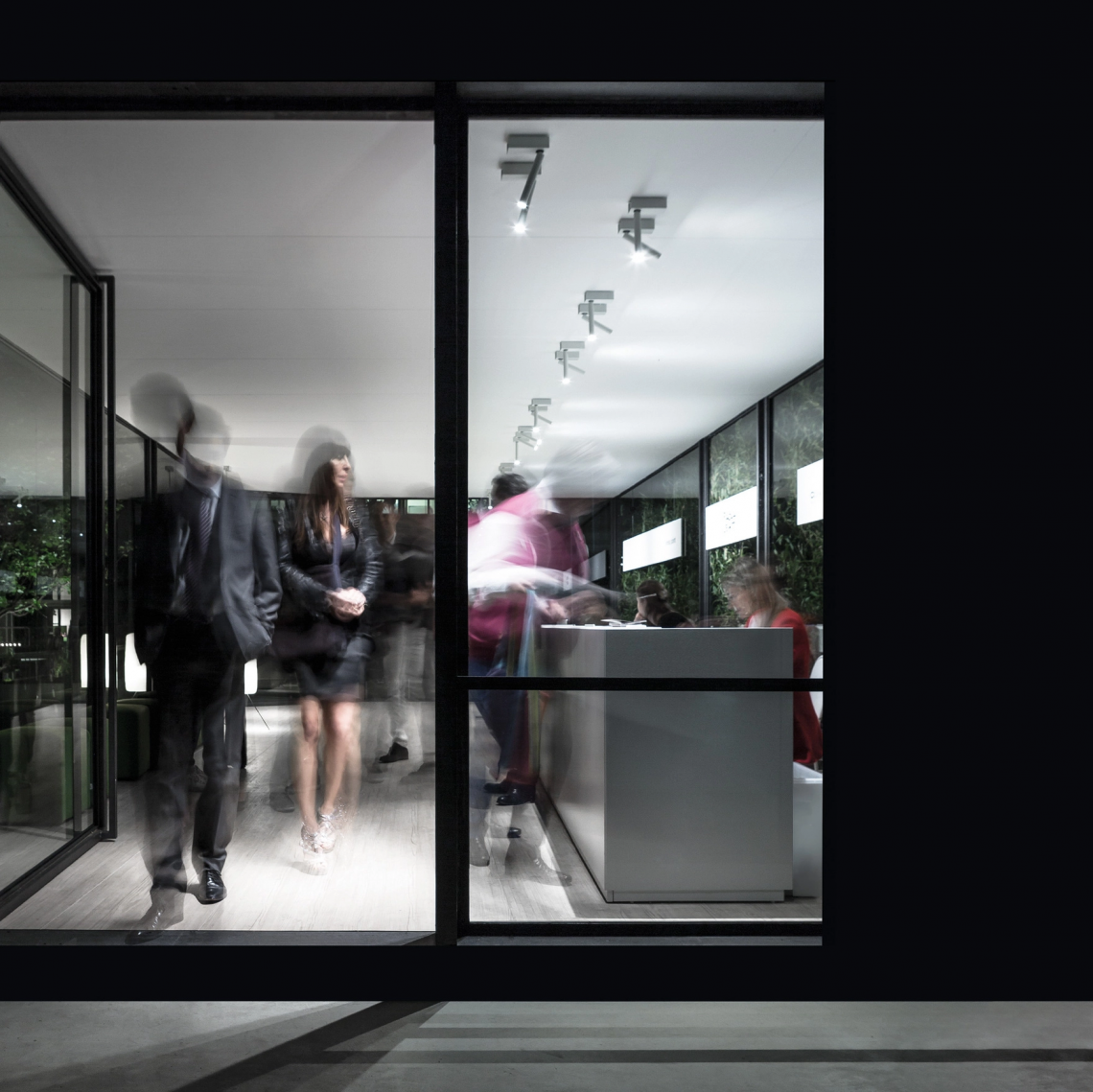 The luminaire is pure form, a simple container for the light source. Light is incorporated into the space, becoming an architectural element.Luminaire designed to be powered by Endless system.