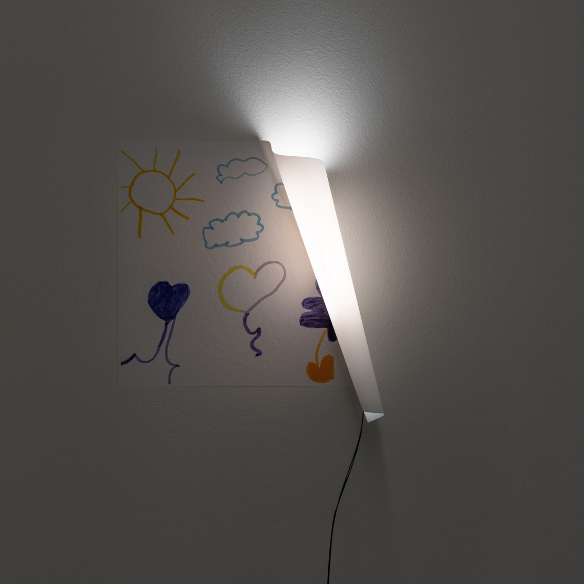 A symbolic gesture, somewhere between reality and imagination. A special sheet of paper with tiny suction cups for fixing to a wall and moved at will, arranged in such a way as to create waves and three-dimensional effects.