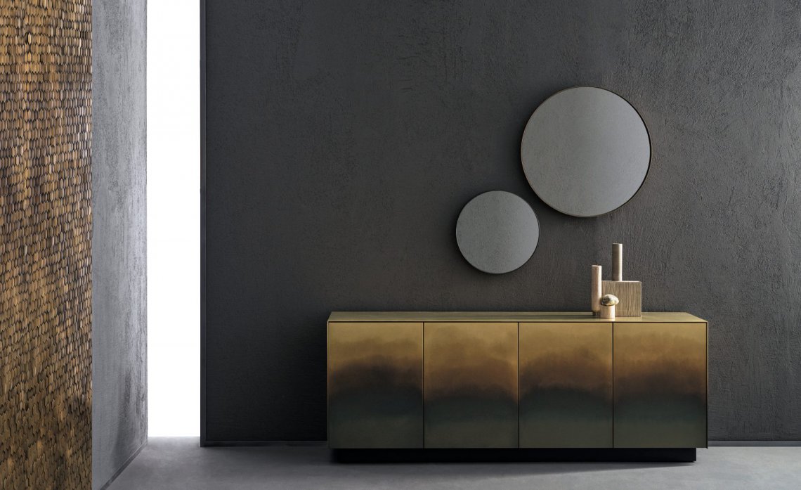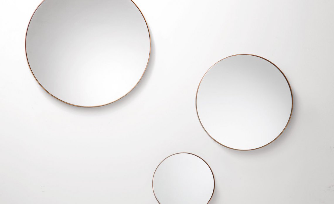 A collection of wall-mounted mirrors that celebrates the virtues of simplicity. Characterized by the essential, complete form of the circle, Riflesso is distinguished by the thick brass and iron frames that outline its reflective surfaces, delimiting rings of different sizes to hang alone or in groups. Versatile pieces perfectly suited to the contemporary nature of domestic living, these decorative items combine the richness of De Castelli finishes with the extreme essentialism of its shapes.