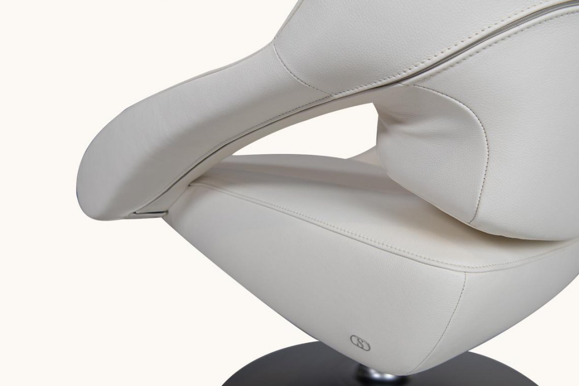 對前衛藝術的致敬,區別與任何的主流設計。其設計風格自信、清晰、直率和果斷。 底部支架創新的傾斜功能可以支持坐姿,有利于放松身心。此款具有低靠背或帶有頭靠的高靠背,以及折疊式的擱腿支架。