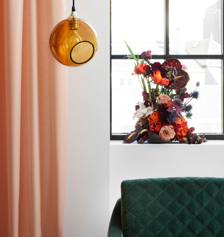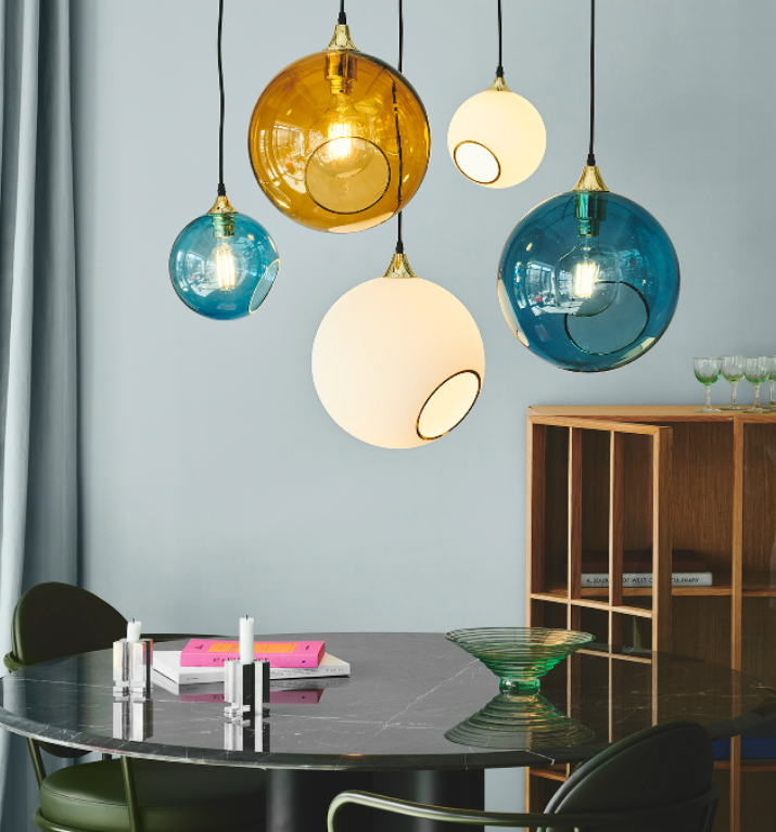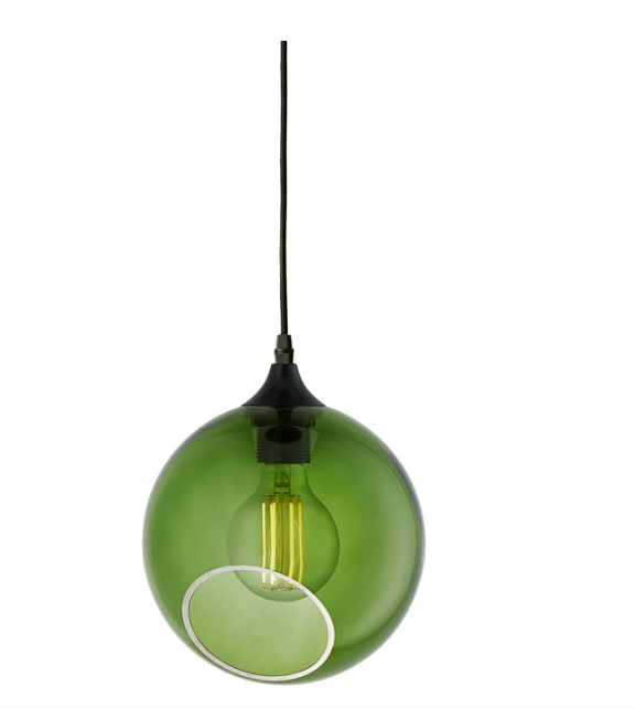 The Ballroom pendant is simple and excellent. The classic shape combined with the gold plated or black suspension makes this lamp timeless. The glass dome is mouth blown and hand painted. The edge of the faceted hole is either gold or silver.