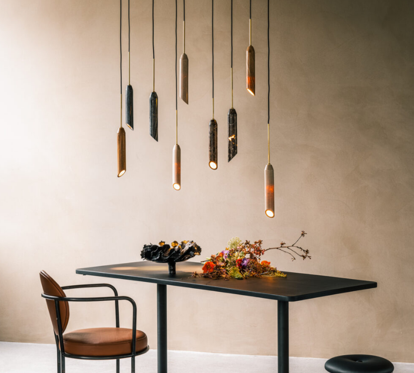 The Marble Art pendant is an elegant lamp providing a direct down light. The body is a smooth polished marble cylinder with gold suspension. Each lamp has a unique pattern due to the nature of the marble stone thus the name; Marble Art. This is not just an ordinary downlight. The width of the light-cone can be adjusted from narrow to wide. Body in marble and structure in plated iron.
