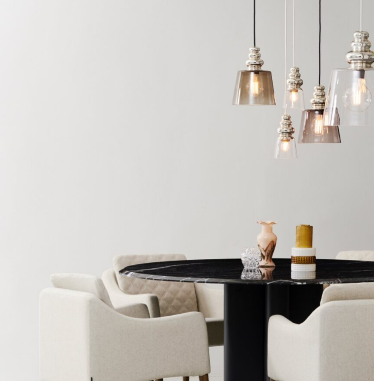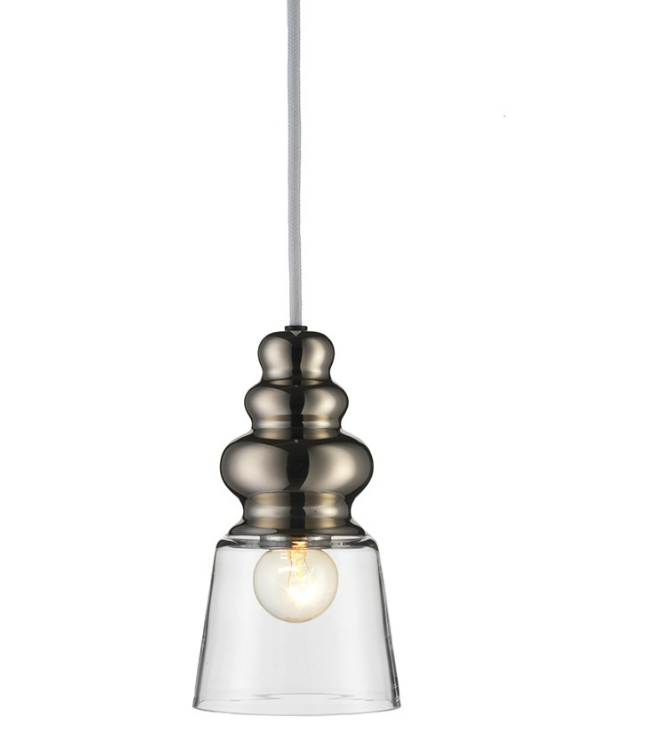 The Pollish pendant is made of one piece of mouth blown glass with a hand painted silver top. The classic shaped lampshade combined with the voluminous silver top makes this lamp special. The glass pendant will decorate any room beautifully and works great alone or in clusters of different colours or sizes. The Pollish Collection is available in three sizes and two colour variations.