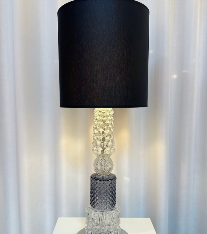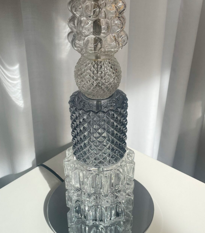 The Original Vintage Lamp is made of carefully selected vintage glasses with different shapes, colors and patterns which make every lamp unique and a piece of art. Both base and lamp are handmade in Denmark. All lamps are one of a kind.