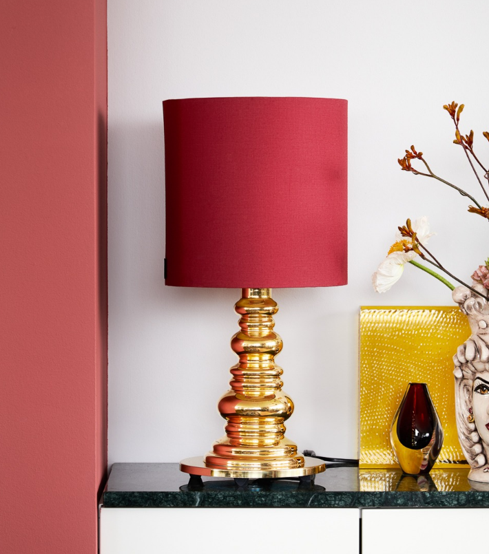 The Punk Deluxe lamp is an expressive decoration. The hand painted glass base combined with the handmade shade makes this lamp truly luxurious. The lampshade is handmade in Denmark. Want another customized shade? – Please inquire at mail@design-by-us.com.