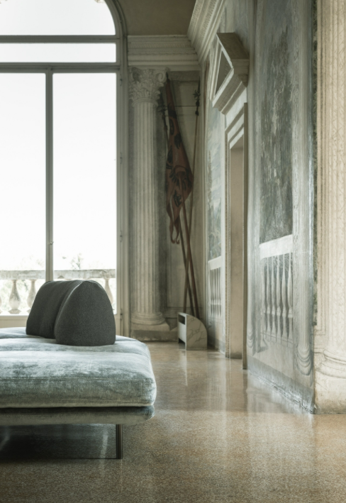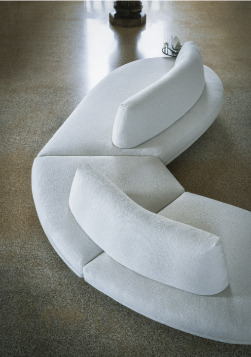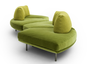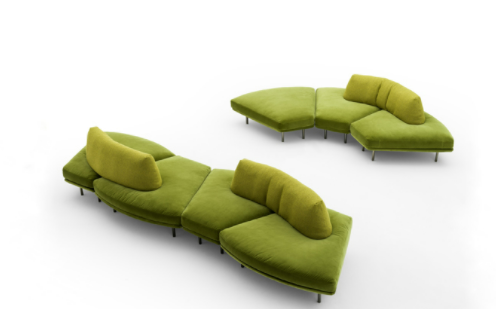 Elies is characterized by soft and sinuous shapes, curved and enveloping lines that convey simplicity and elegance. Distinguished by the combination of two modules with large-sized seats and a roll-up backrest, Elies is an organic sofa, which thrives on maximum modularity and its recomposition over time.Featuring a fully-removable cover, it is available in leather or fabric with an optional side table in various finishes.The floating seating in different organic forms is the result of investigating several combinations for different composition opportunities. The innovative, extremely supple backrest that takes on different sinuous shapes is feather filled with a polyurethane insert.