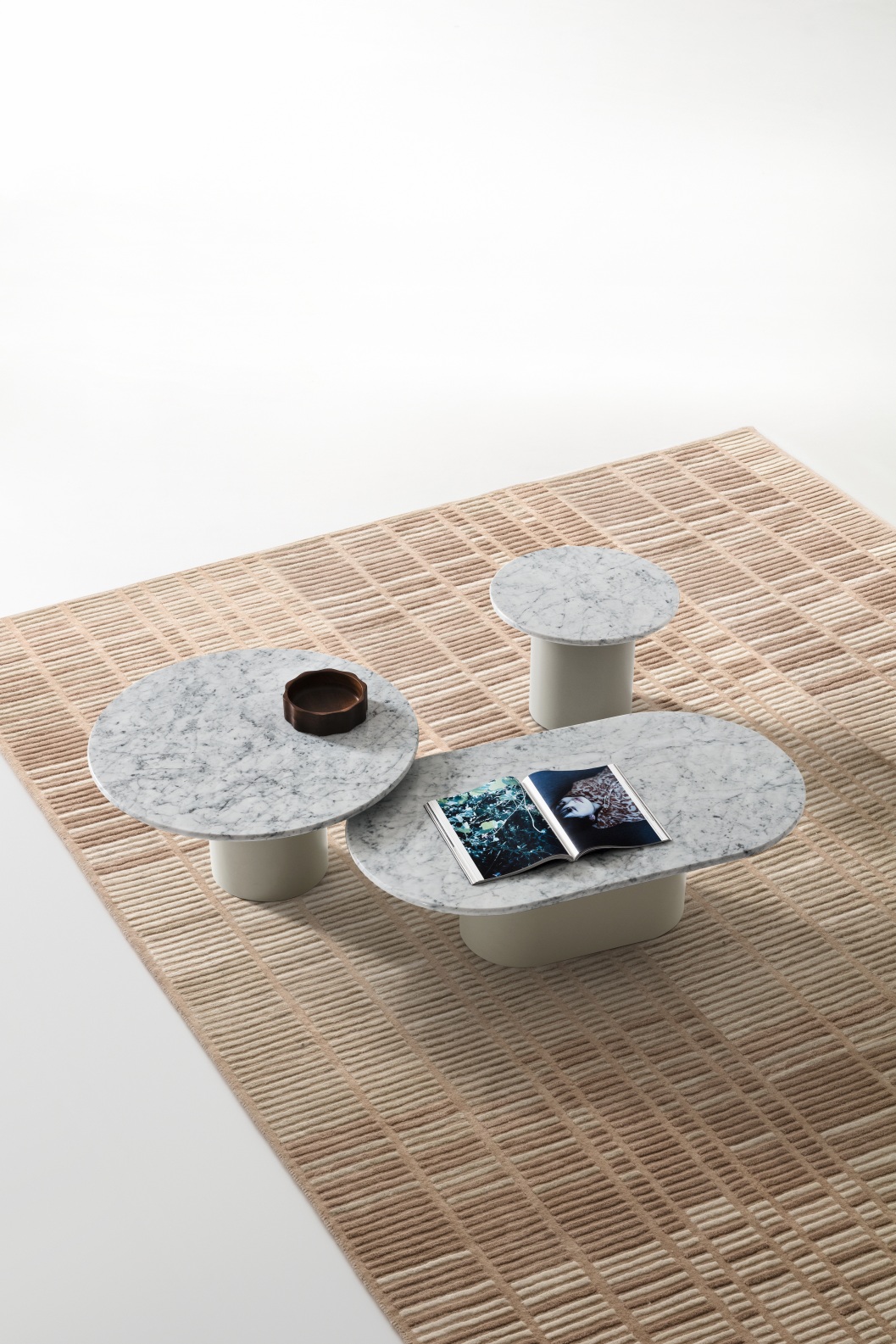 La famiglia Arcade si allarga e genera con continuità formale dei tavolini, che interpretano l’idea di pilastri e passaggi con grande senso estetico ed equilibrio. I tavolini – di altezze e profili differenti – presentano varie finiture tra cui “Oxide Mirror”, una inedita superficie a specchio con effetto anticato.