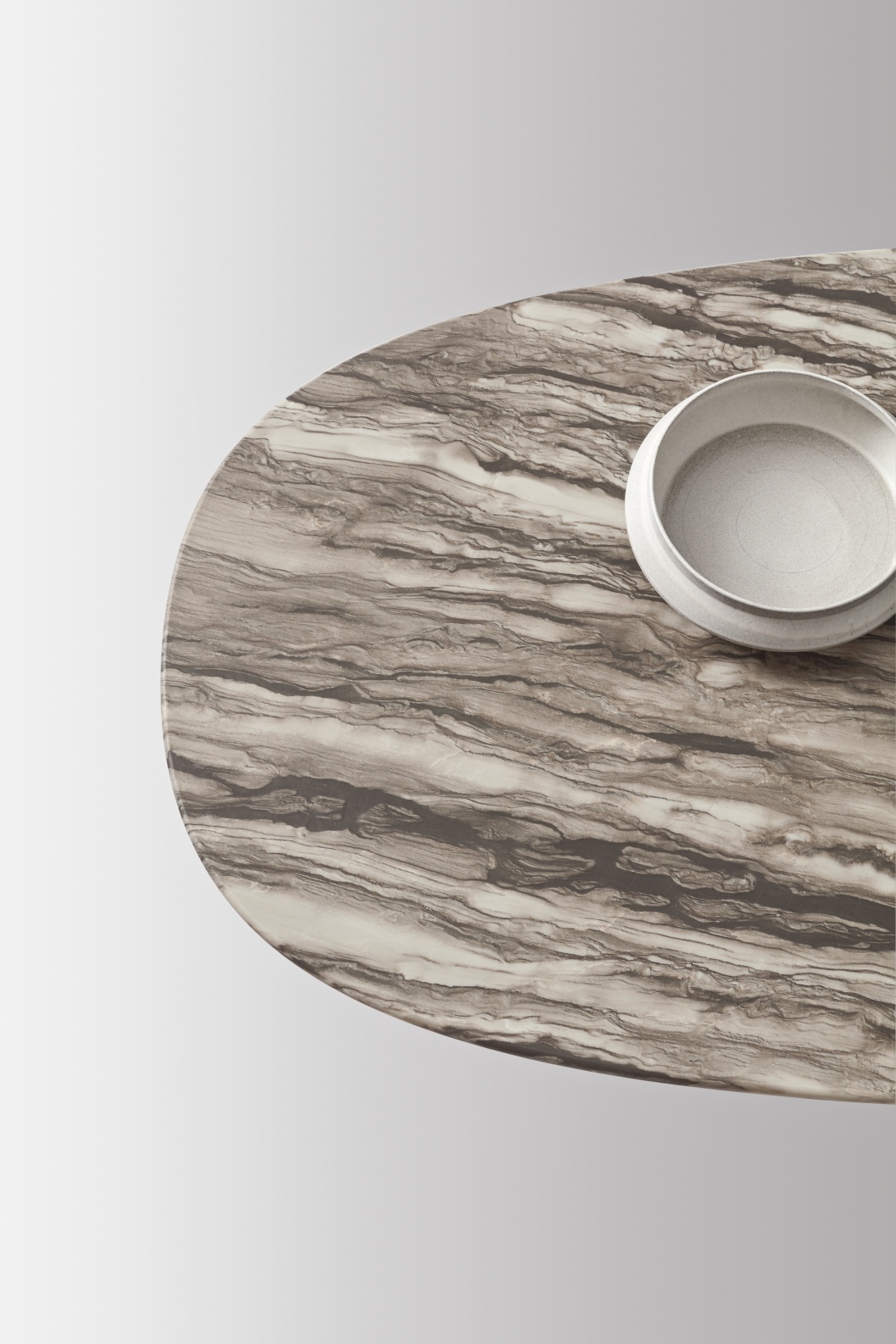 Forme accattivanti e raffinate danno vita a una composizione di tavolo – in diverse dimensioni – e sedia – rivestita in pelle oppure in tessuto. Un insieme dal sapore originale e classico al tempo stesso, come un paesaggio urbano che unisce con armonia anime differenti.