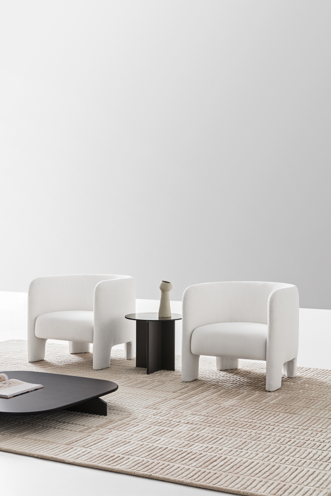 La collezione Cali si amplia grazie a una famiglia di imbottiti dalle linee puntualmente sinuose e avvolgenti. Il design della poltrona e dei divani – a due e tre posti – spicca per un marcato senso di stabilità, enfatizzato da gambe forti.