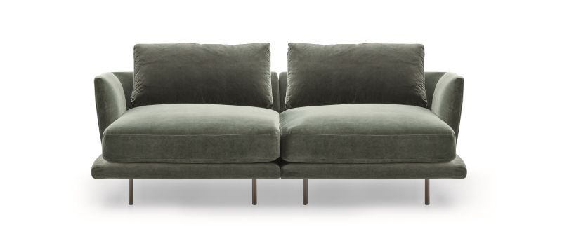 Royal is inspired by the world of fashion and interior decoration and is available in two versions distinguished by different backrest cushions: in the first case, the cushions are as wide as the seat while lots of small back cushions define the second option.