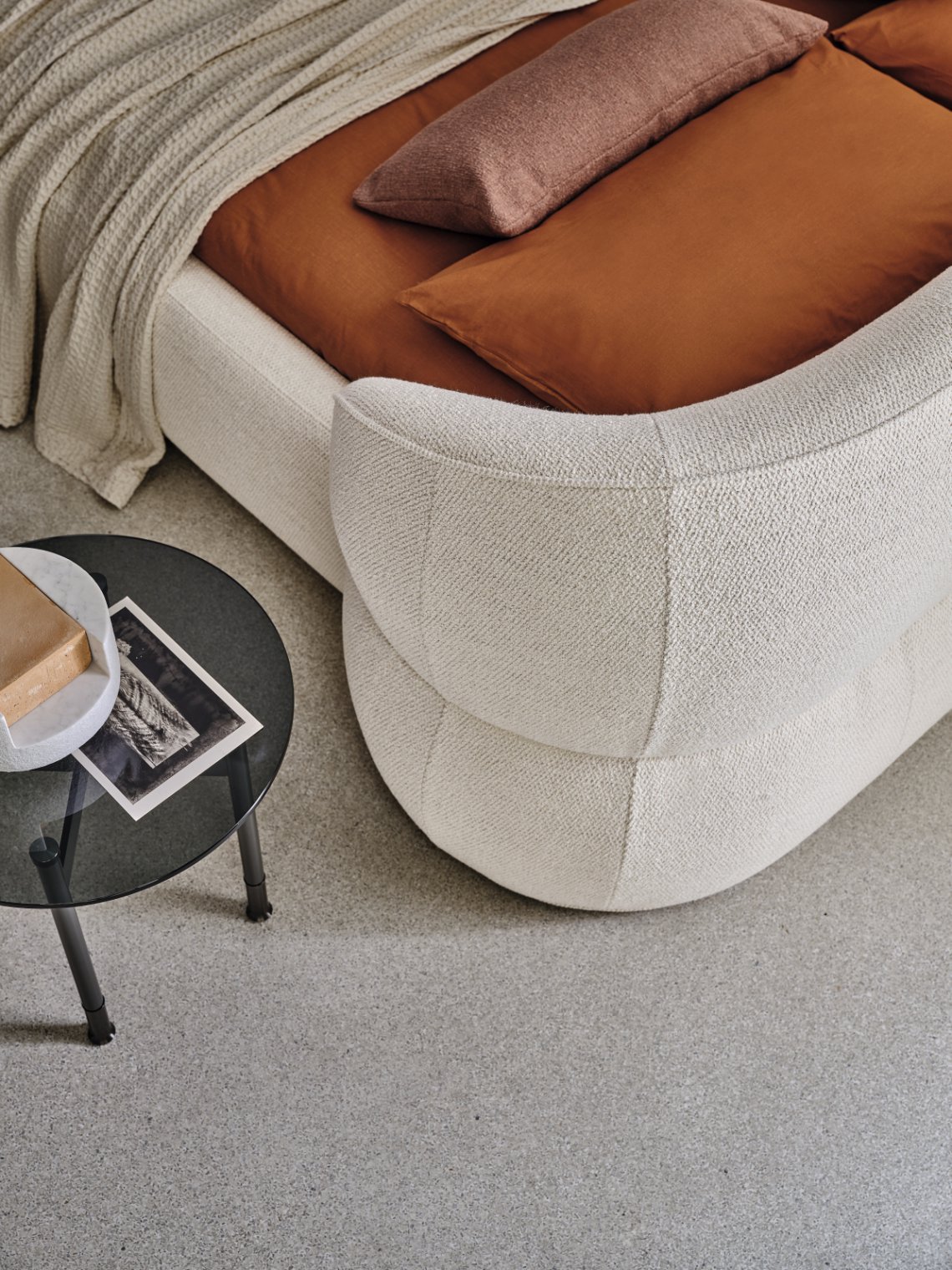 Rotondità e presenza scenica per un letto ideale nel definire una camera esclusiva. L’oggetto scultoreo si esprime al suo meglio in una collocazione centrostanza.