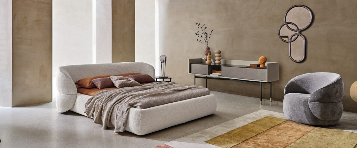 Rotondità e presenza scenica per un letto ideale nel definire una camera esclusiva. L’oggetto scultoreo si esprime al suo meglio in una collocazione centrostanza.