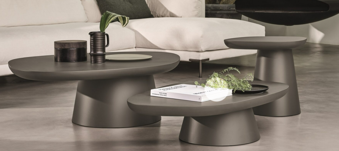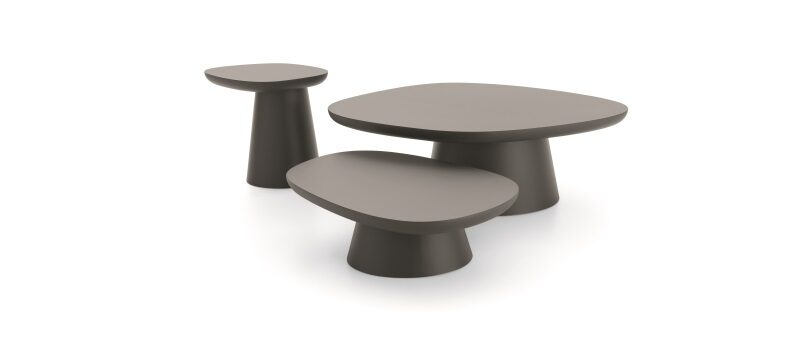 Idealmente scolpiti nella pietra, Stone è un trittico di tavolini pensati per armonizzarsi a forme e colori proposti nei prodotti Ditre Italia. Disponibili sia per gli spazi indoor che per quelli outdoor.