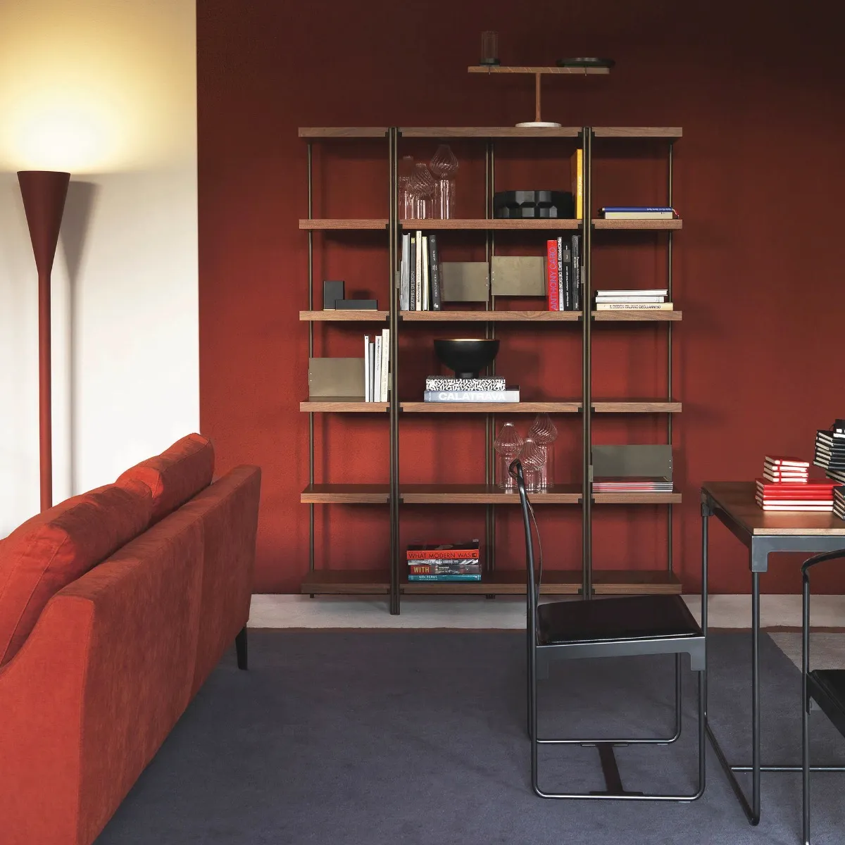 La struttura a zig-zag dello scaffale è semplice e fresca; la paletta di colori per le parti metalliche - nero, bianco, bronzo e acciaio lucido - è completata da due tipologie di ripiani in legno, in quercia e in noce americano. I fermalibri a clip sono disponibili negli stessi colori delle altre parti metalliche, oppure con la stessa finitura del legno dei ripiani. Un’ulteriore tonalità in arancio fluorescente arricchisce l’offerta dei segnalibri. Zigzag è disponibile in due diverse altezze, e si assembla senza l’aiuto di attrezzi.