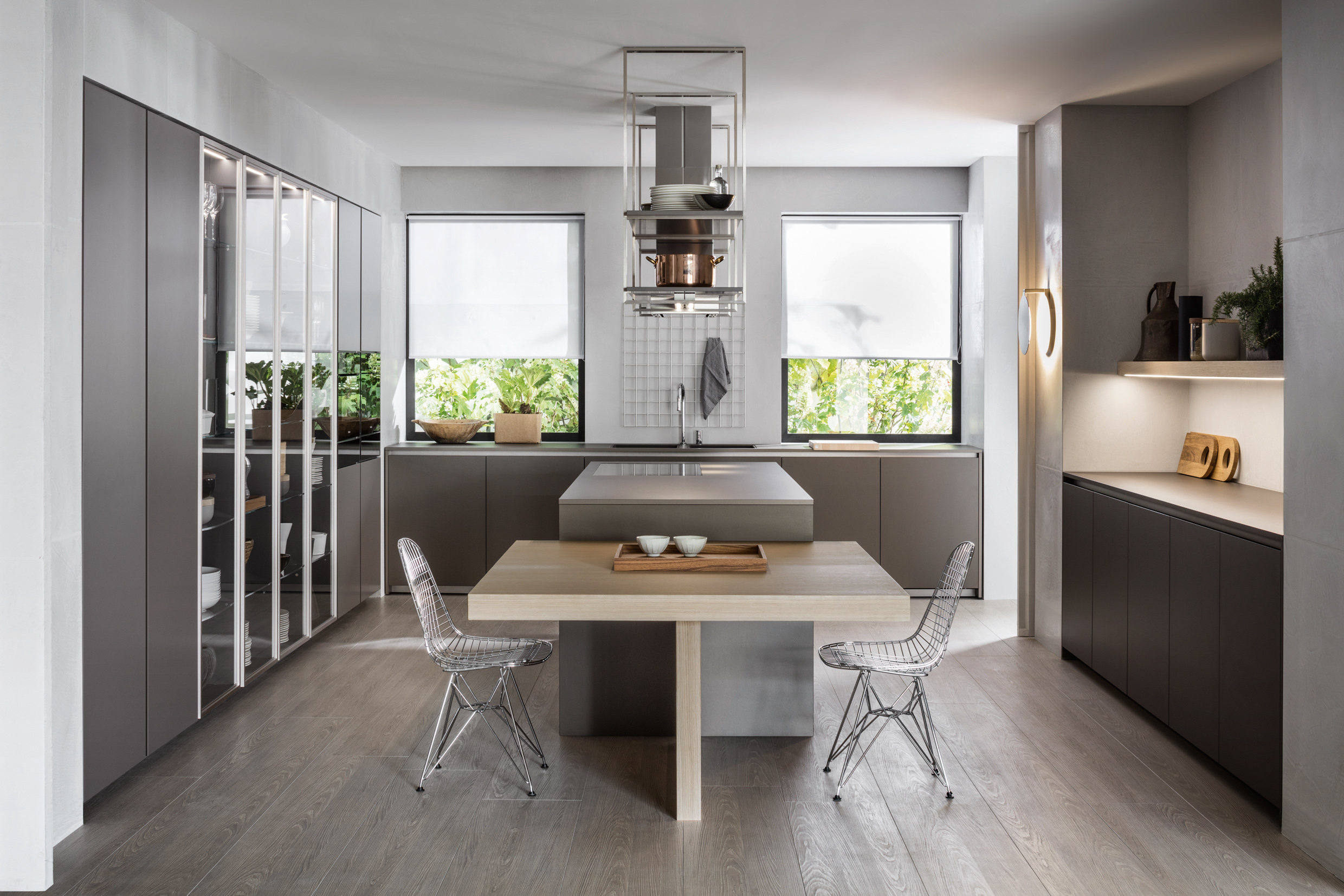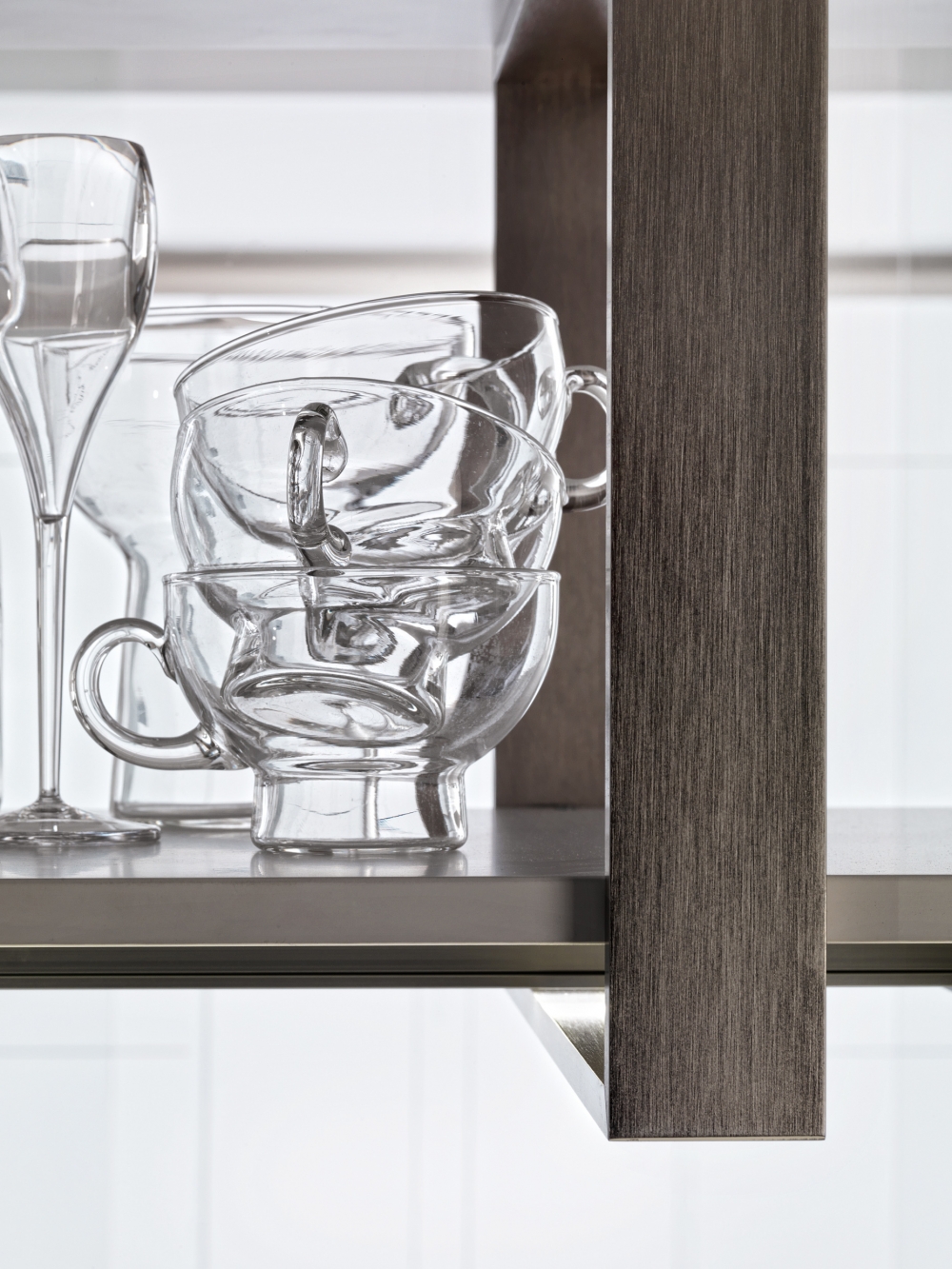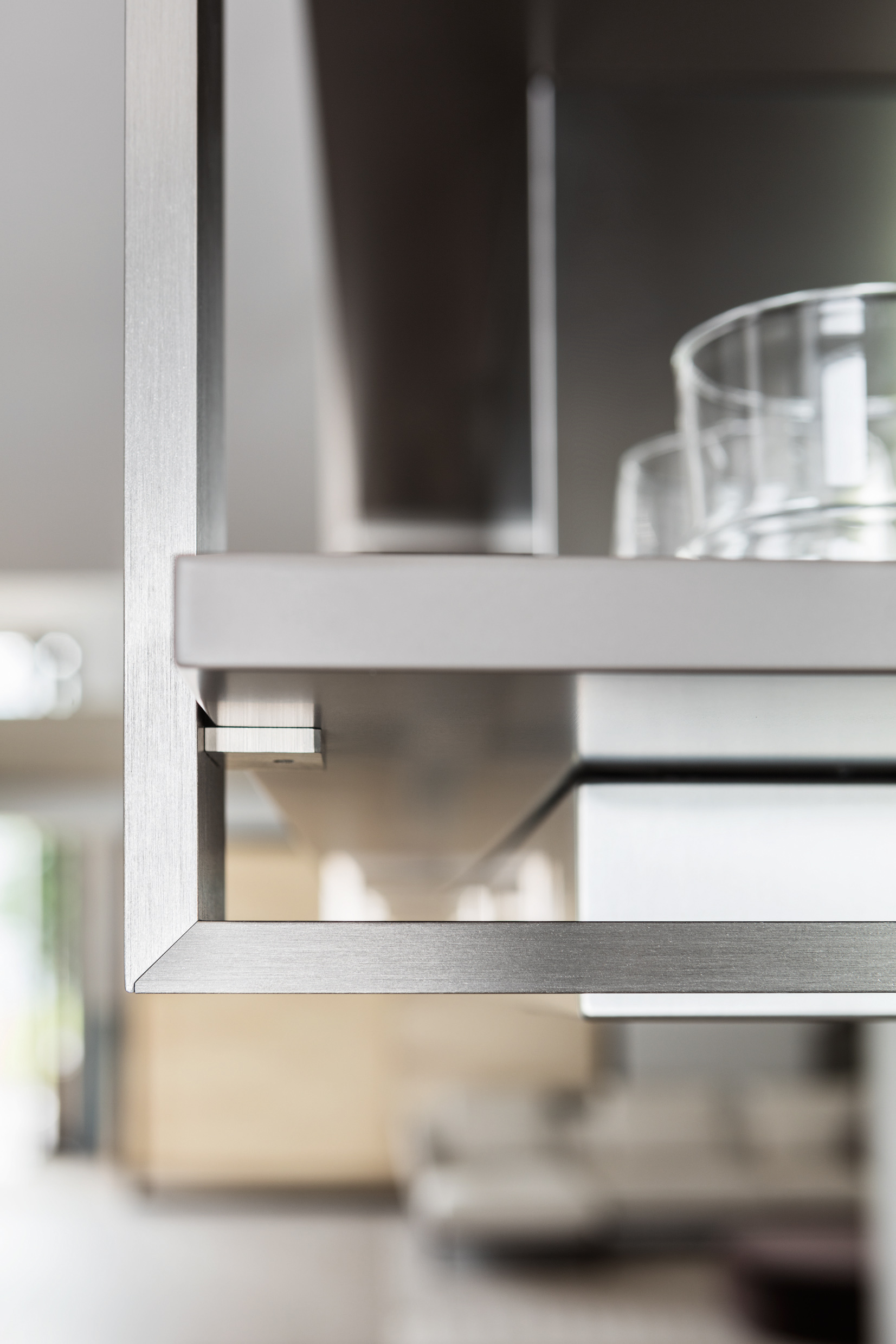 合理調(diào)配的空間搭配上融合了嚴(yán)謹(jǐn)形狀的幾何精神,擁有極豐富的細(xì)節(jié)和結(jié)構(gòu)質(zhì)量。 由于基座比較高,因此可以更好的達(dá)到容納效應(yīng)。 Hi-Line 6系列遠(yuǎn)離了傳統(tǒng)廚房的設(shè)計(jì)理念,擺放更多附屬物也成為了可能。 Hi-Line系列上未安裝任何手柄,完全依靠一個(gè)凹槽裝置來開啟和關(guān)閉柜門。