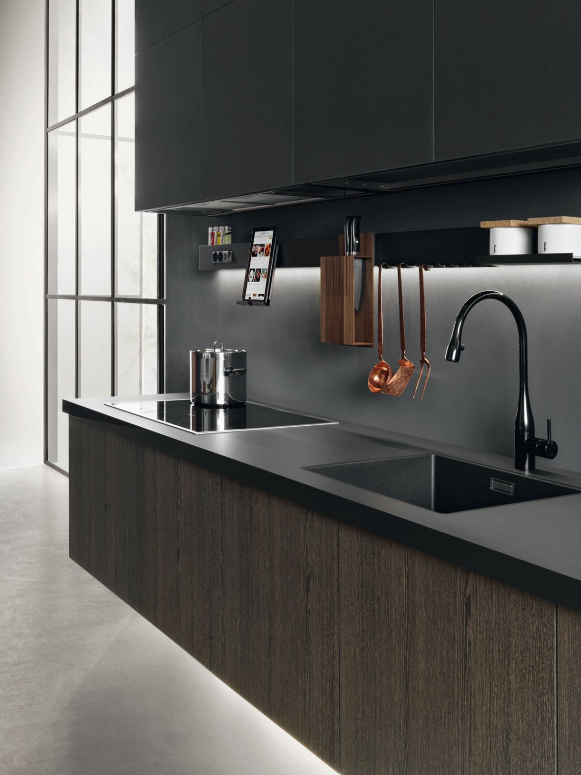 worktop and the wall units, it offers a handy support for IT gadgetry (such as an iPad) and classic equipment
