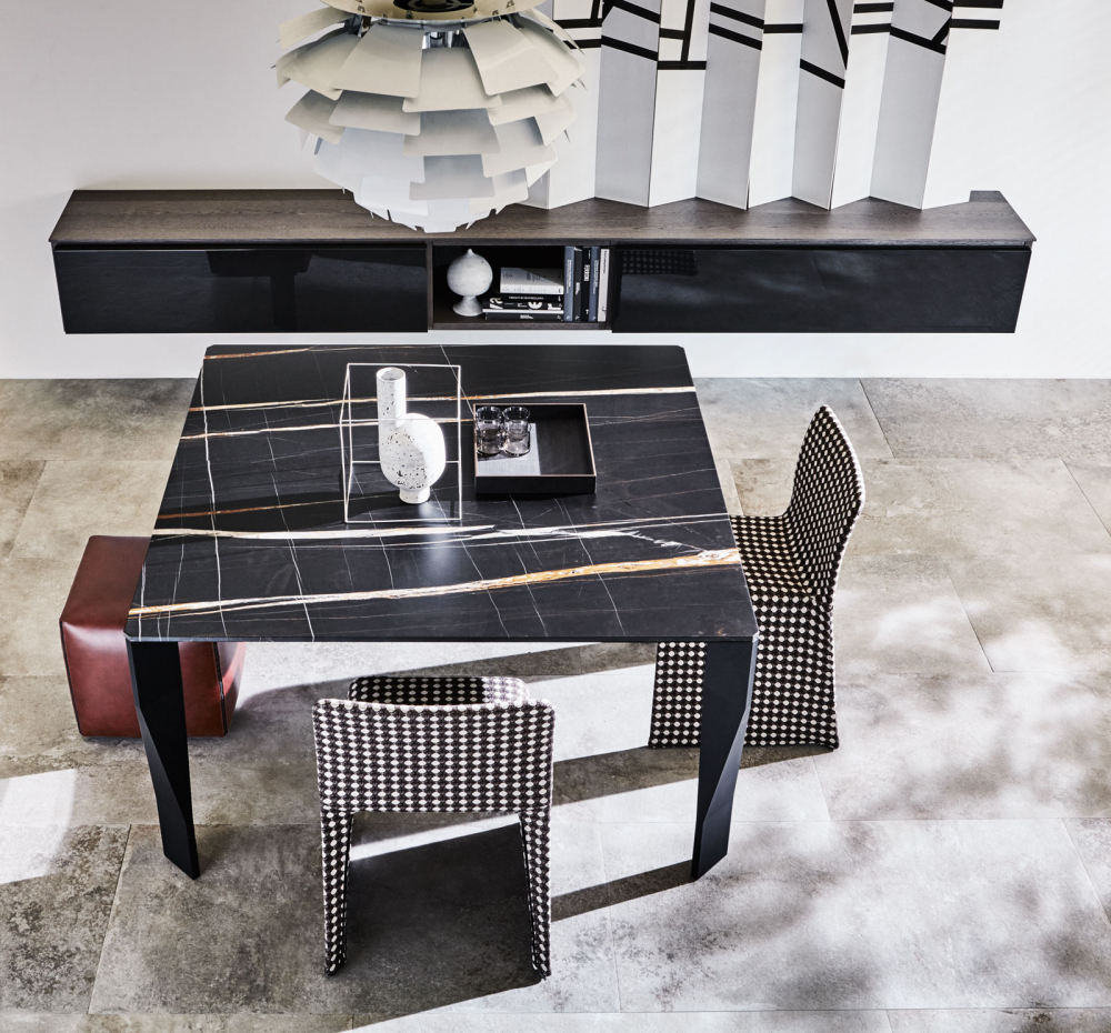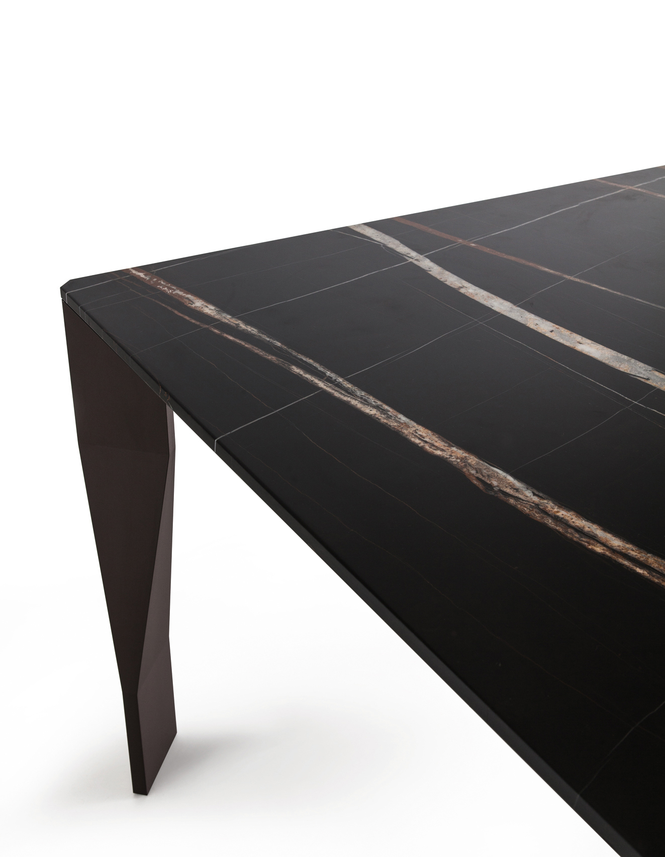 一個帶有折疊形狀桌腿的餐桌系列,像精致的折紙手工工藝品。桌腿由輕質的鋁箔巧妙的折疊成型,內部插入鋁和聚氨酯結構以保證穩定性。正方形或長方形的桌面可選玻璃,支撐結構是亮光鋁色或高光烤漆。Diamond于2005年贏得紅點設計大獎。