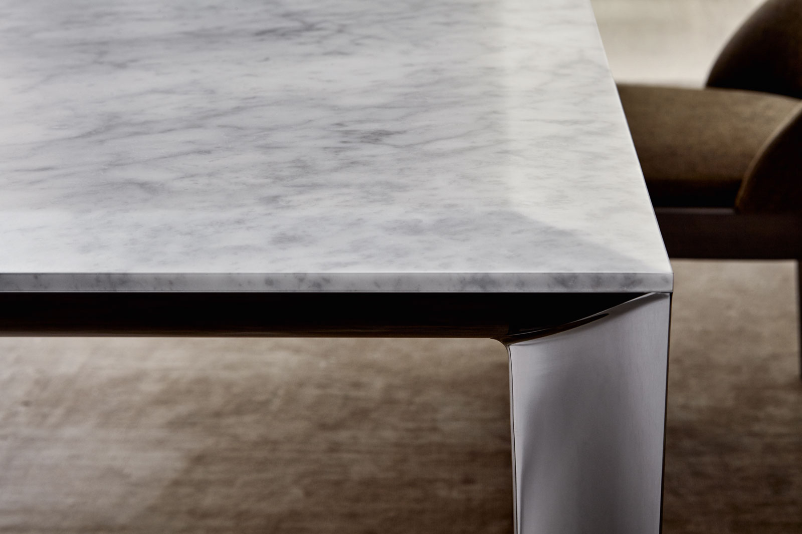 Filigree餐桌可以選用一系列不同尺寸或者可伸縮款式。高光和亞光壓鑄鋁制框架支撐著臺面,豐富的材質選擇提升了價值感。通過隱藏的可橫向折疊五金系統實現可伸縮餐桌功能。整張桌面為一個整體,并可以通過延伸的桌面擴大尺寸。桌腿盡量外置以最大限度地利用空間,桌面極其纖薄,值得一提的是用于容納伸縮桌面功能件的空腔結構內部只有38mm凈高。餐桌可選用不同的材料和飾面以滿足所有需要。