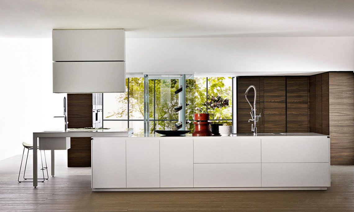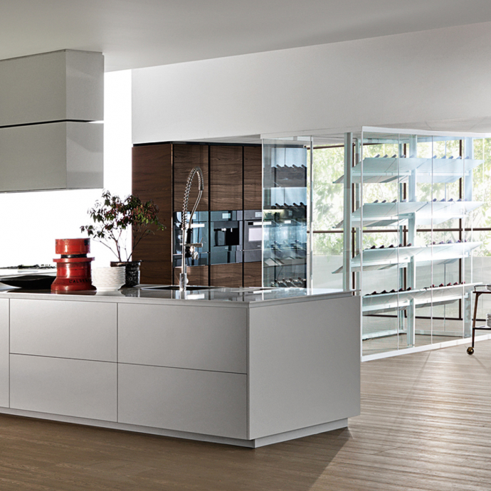 standing structure, patented by Dada. A solid extrusion of aluminium supports the slimline worktop which