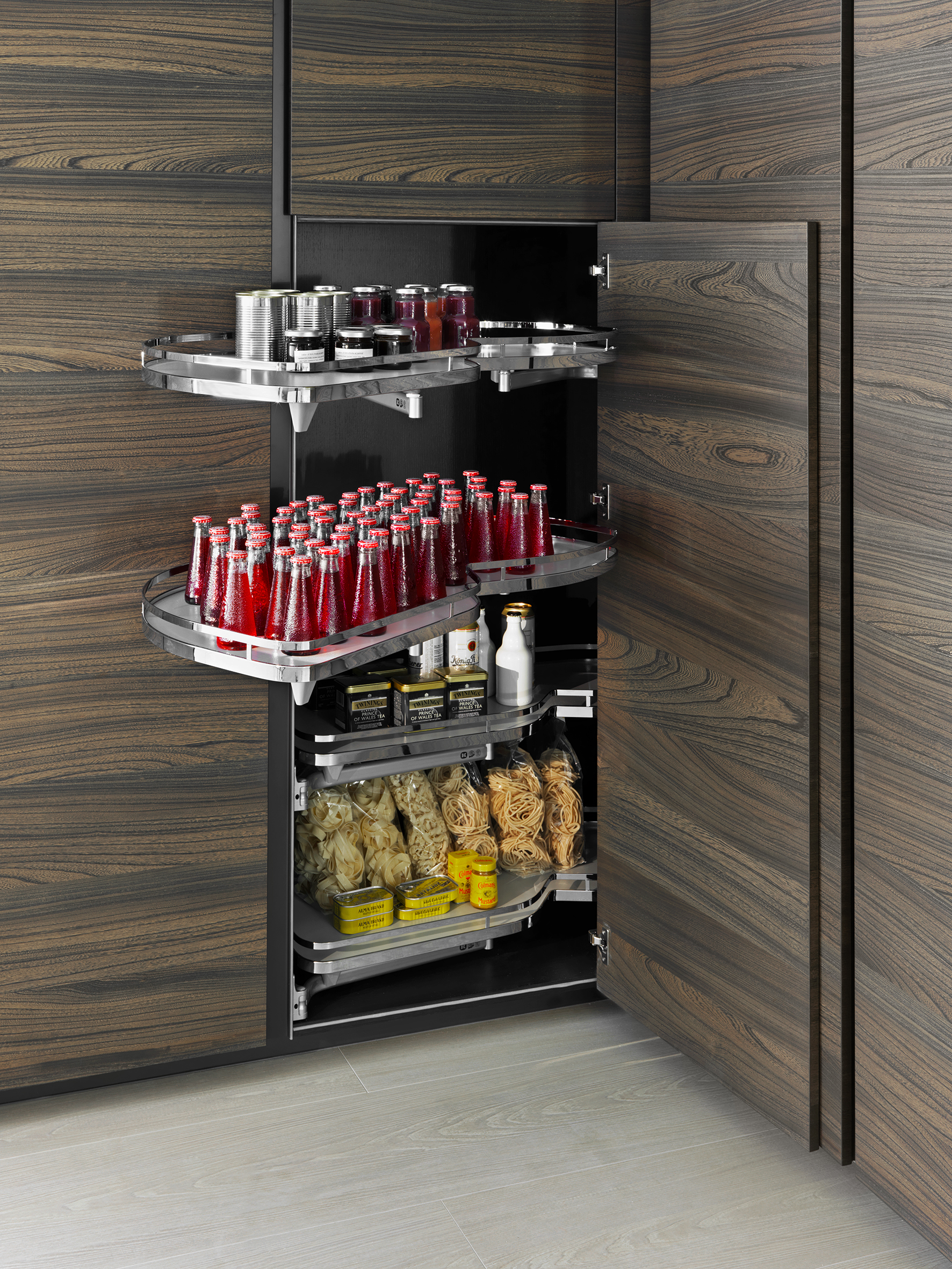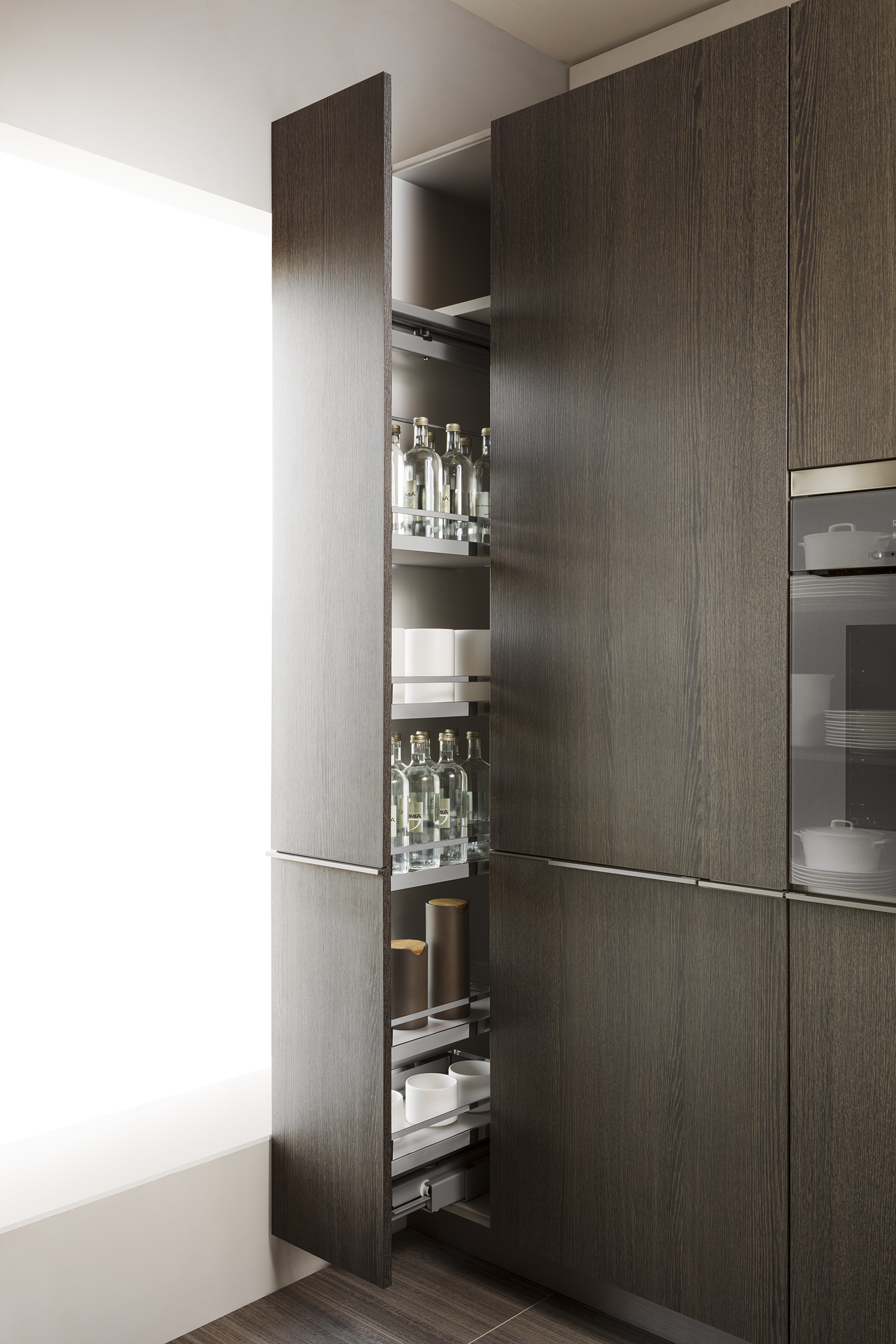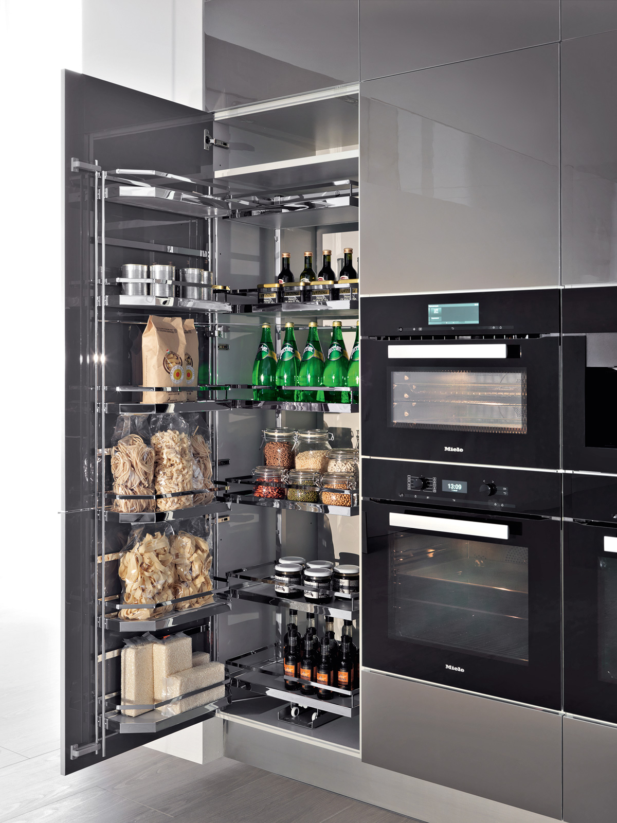 Perfect storage of supplies thanks to different shelves and accessories in the fully exploited columns, without