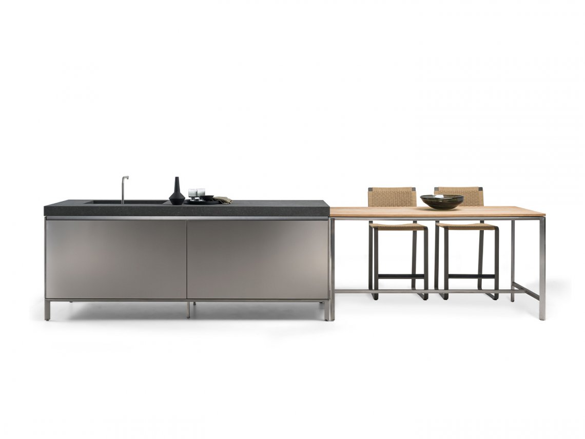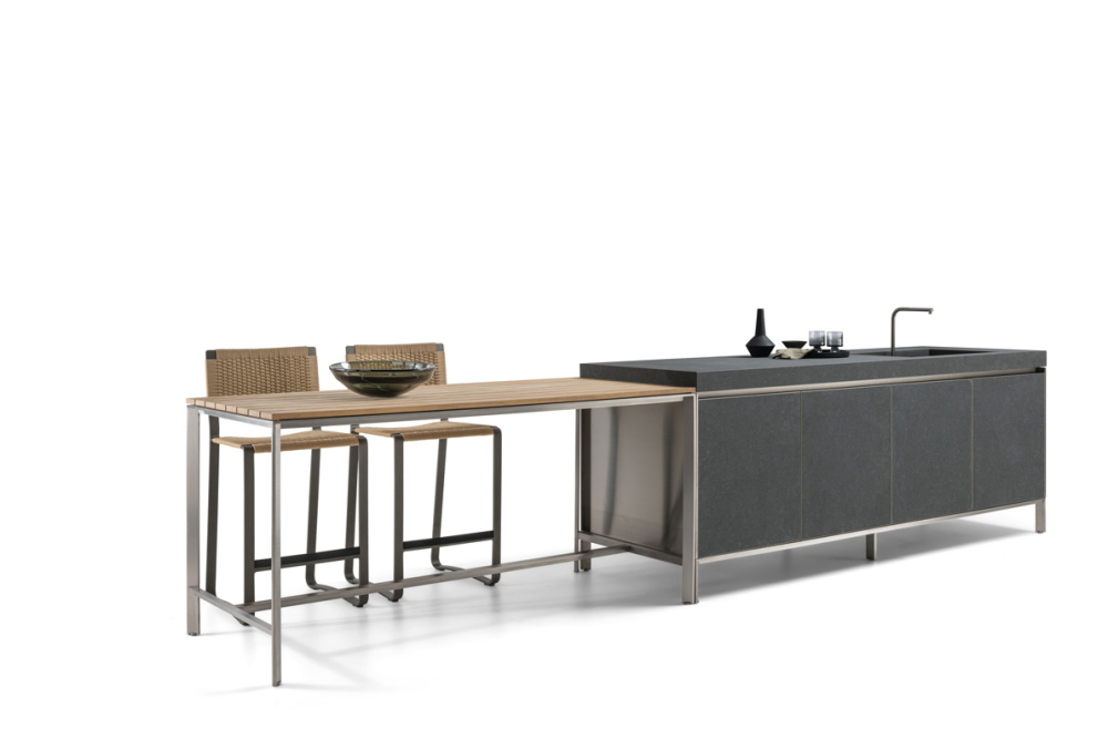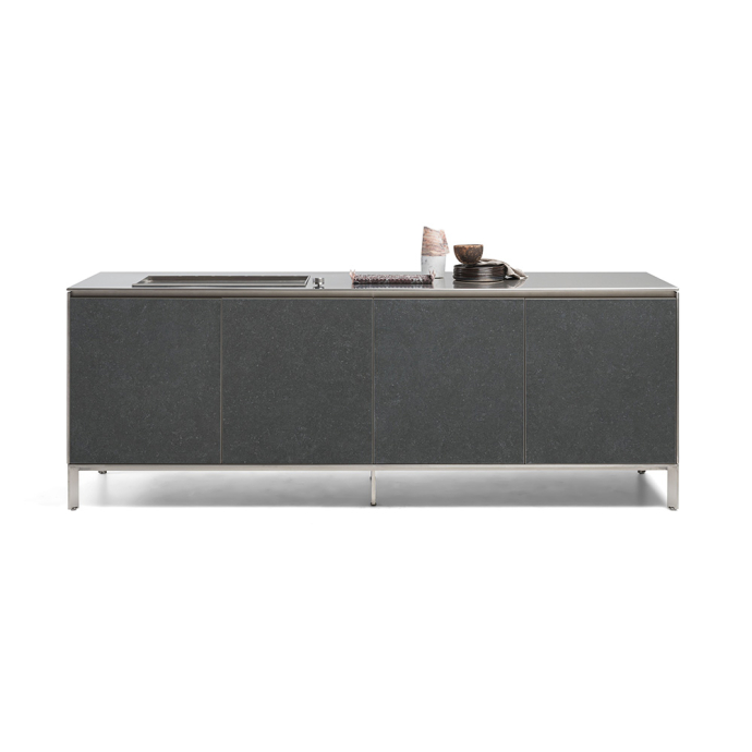 The Helios outdoor kitchen encapsulates Italian craftsmanship combined with innovative technology, making it suitable for outdoor use.