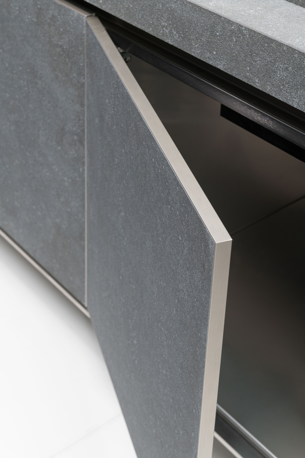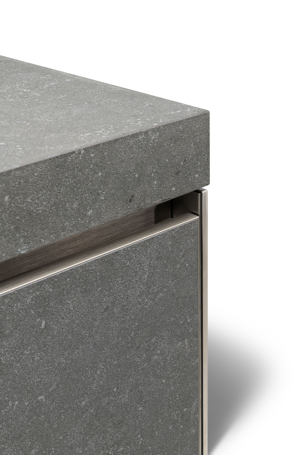 Its clean, rigorous lines and monolithic yet discreet impact allow it to be combined with both the Landmark and Timeout collections, in which — thanks to the wide choice of finishes — it echoes a selection of materials, enriching them.Textures with a material feel reminiscent of natural stone, ceramic, teak wood or steel finishes, for a wide array of choices that allow for extensive customisation, making it suitable for different styles and environments.The colour palette draws inspiration not only from the world of natural tones, but also from a more classic range of whites and greys.