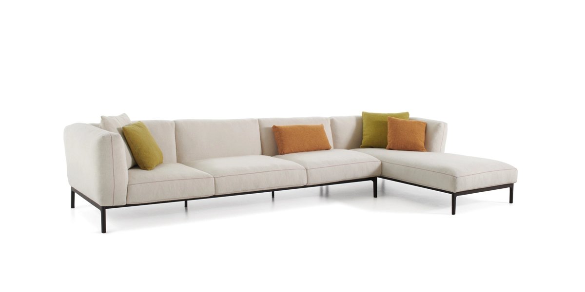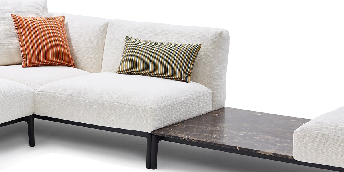 The EVERYDAY LIFE collection of furnishing is enhanced with a modular sofa that creates new, versatile configurations and solutions that favour a convivial atmosphere and expand to accommodate any lifestyle. The clean lines of this modular sofa are embellished by an abundance of unexpected details with simple contrast stitching in primary tones, such as the zipper with a red tape and red leather pull, which references Paul Smith’s fashion heritage by recalling his sartorial savoir-faire, including the leather straps along the backrest, or the exposed joints recalling the Japanese cabinet-making tradition much admired by the designer. The eye is captivated by the skilful use of colour that expertly ranges from classic to vibrant with sophisticated ease, in a carefully considered palette of earthy tones and new shades, together with sustainable materials of natural origin such as hemp, kapok and recycled feathers that fill the scatter cushions.