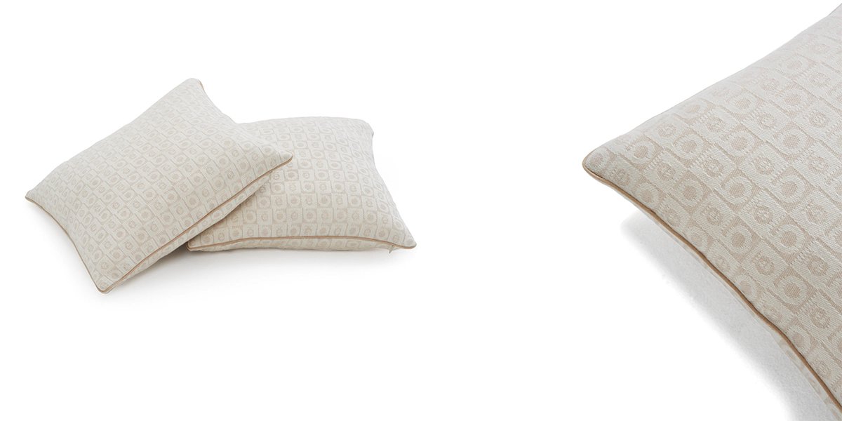 Cover: removable 100 % wool cover with matching grosgrain ribbon and invisible zip.