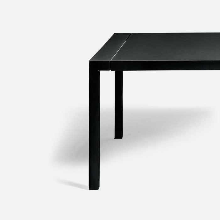 The design of 3Millimetri by Studiocharlie combines the lightness of a sheet of paper and the solidity of steel. Made from laser-cut sheet metal just three millimeters thick, it’s a high-tech project: the side edges, cuts and leg recesses follow a sleek, linear and almost rigorous logic. It comes in semi-matt white, matt black and a dark délabré finish and is also perfect outside the home.