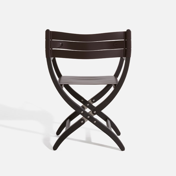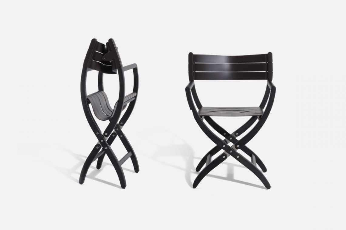 Designing means knowing, it doesn’t mean having intuitions.” The director’s chair, a known and recognised object in the world of design, is revised and revamped with Almayer. The chair, in black stained ash and leather, is thus defined by the relationship between different components combined into a design of binary contrasts. Tradition and innovation, elegance and simplicity, technology and craftsmanship, wood and leather, folded and open.