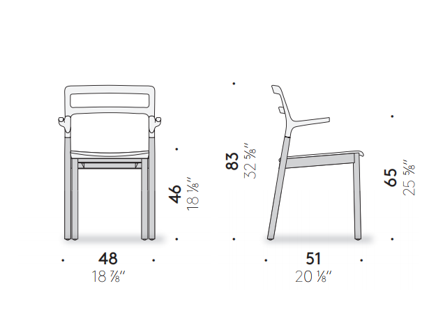 Monica F?rster’s project Florinda lends itself to different interpretations. It passes from the dining area to the study, but it is also perfect for cafes and restaurants due to its agile, contemporary style that makes it unique. Made of natural or mocha stained solid beech wood with a plastic seat and backrest in a variety of colors, it comes with or without armrests and is also stackable.