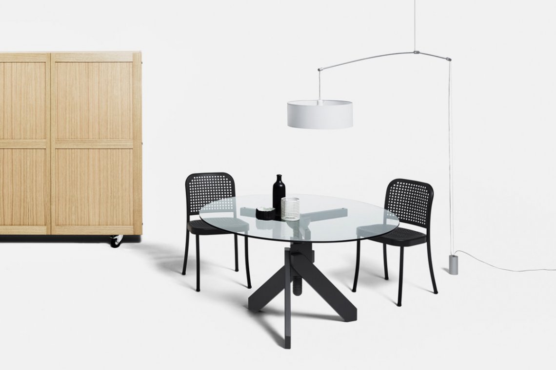 Inspired by the proportions of the classic Thonet chair, Vico Magistretti designed a polypropylene and aluminum chair that’s comfortable, light, and sturdy. Suitable for around the dining table or in the study, it is so versatile and adaptable that it can be used in a variety of settings. More than a chair, it is actually a seating system composed of chairs with or without armrests, stackable seating (up to six chairs), chairs with swiveling castors, stools, multiple beam-mounted chairs and accessories.