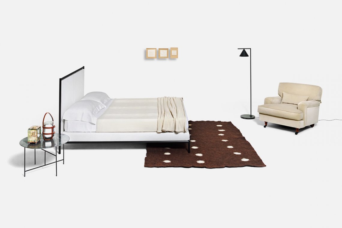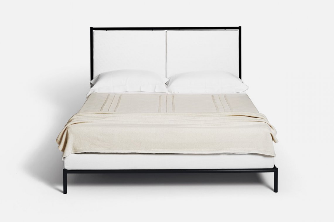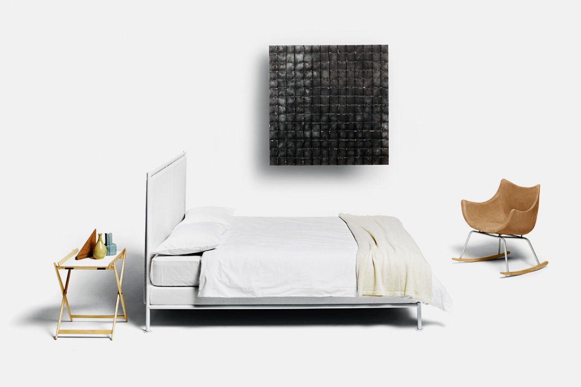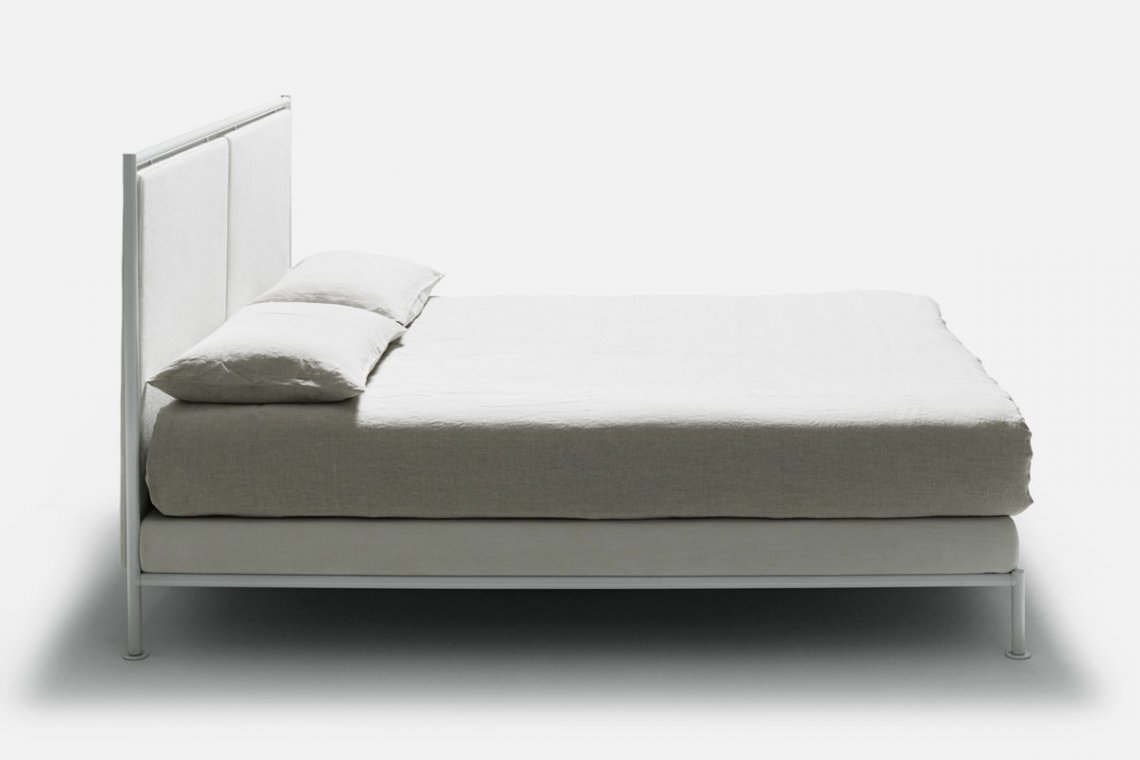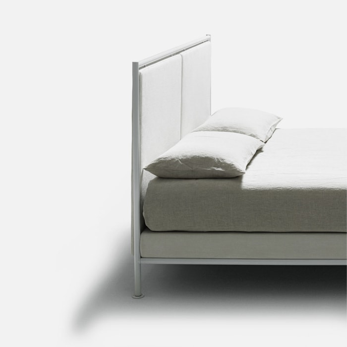 Minimalist and elegant, Asseman Open is the version of Patrizia Cagliani’s project without a canopy. The tubular structure comes in matt white, while the headboard and bed base can be covered in a wide variety of removable fabrics.