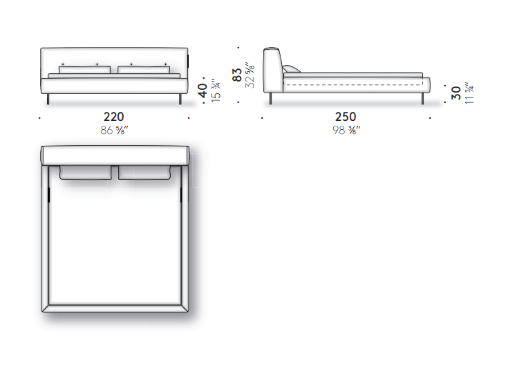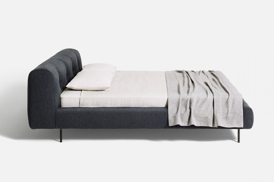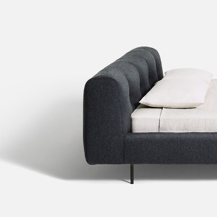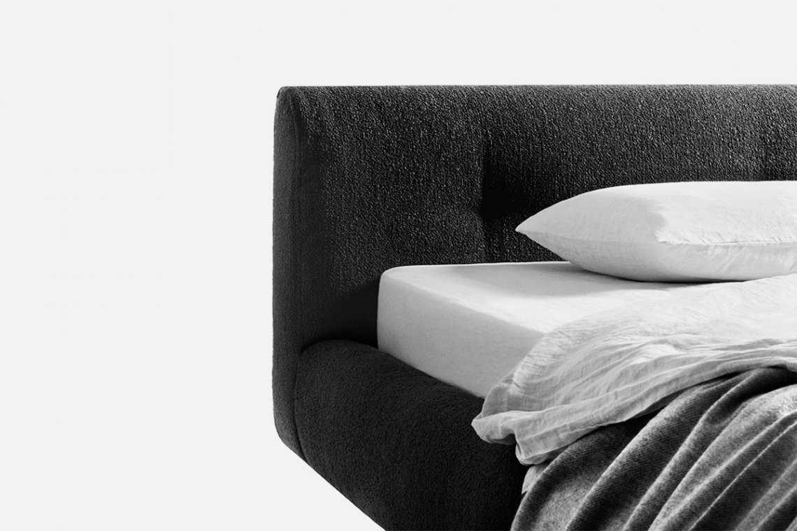 Soft, relaxed shapes and stitching that is an effective, contemporary version of the tuffed capitonné motif: the Erei bed, designed by Elisa Ossino, makes a visual statement with its full volumes, rounded corners and curved lines, just like the rest of the collection. Coordinated bedside tables can be placed at the sides and foot of the bed.