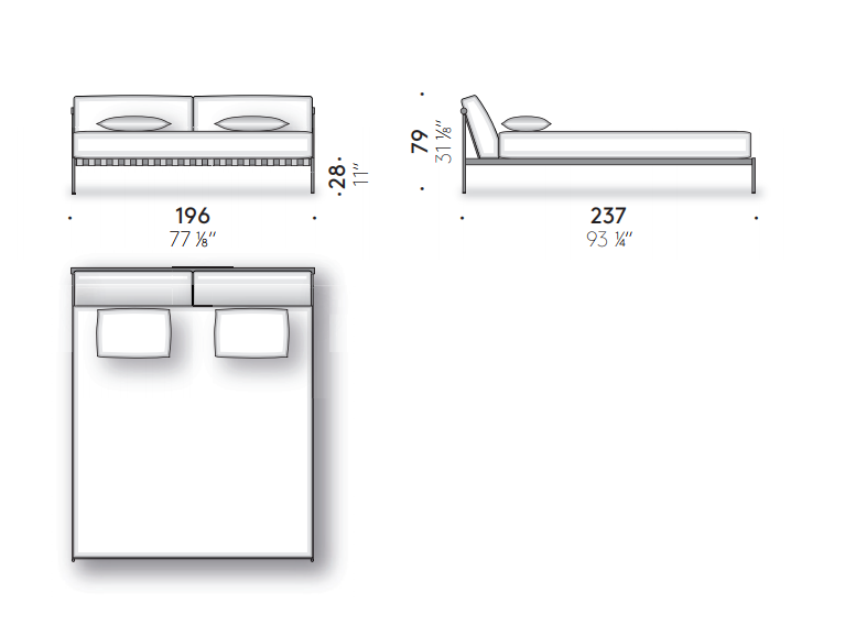 Scandinavian inspiration and outstanding Italian craftsmanship are the hallmark of the étiquette collection, the project by the duo GamFratesi, here in the bedroom version. The regular and cohesive matte black steel frame is completed by leather straps and a charcoal-colored ash wood bar. Two large goose down pillows that form the headboard are extra comfy for relaxing and reading before bedtime.