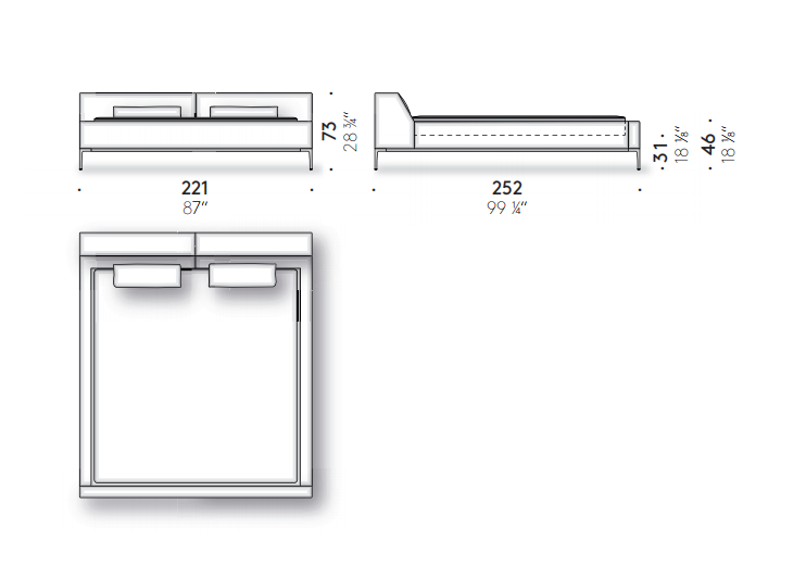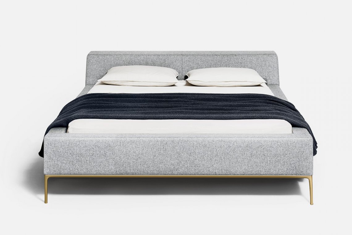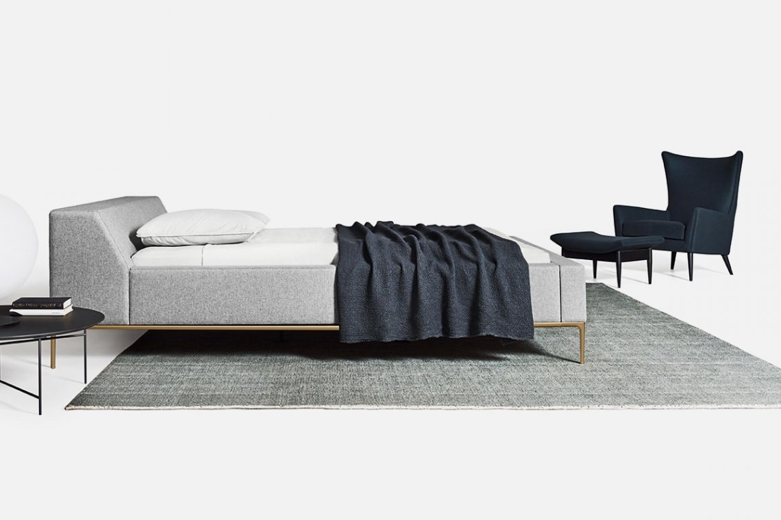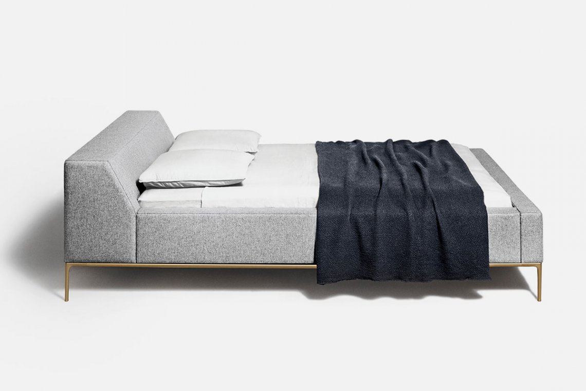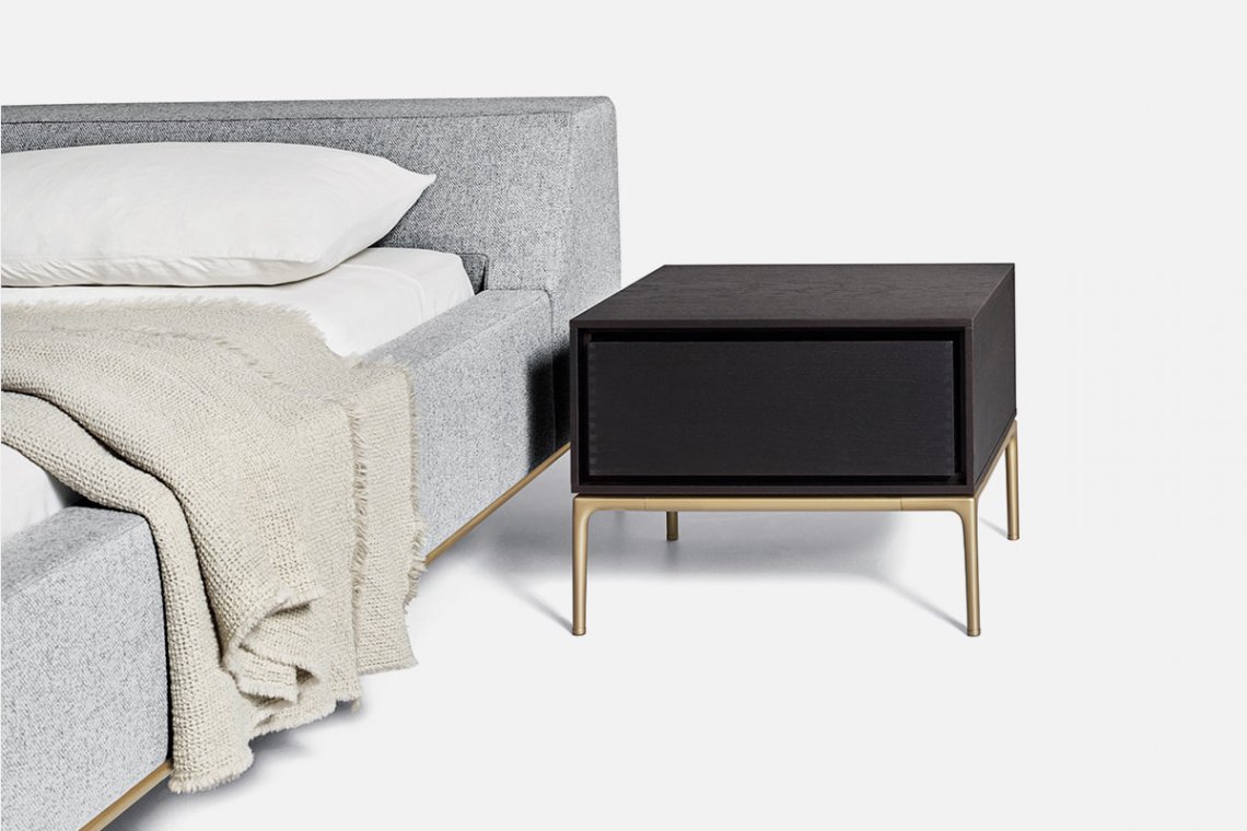The elegance of the lines is minimalist, and the sleek design by the Japanese Time & Style has a no-frills look. The Time for Trip Memories upholstered bed is cozy and ergonomic, so you can comfortably lean against the angled headboard while reading a book. It is completed by a bedside table that shares the same brushed metal frame and has the same geometric lines.