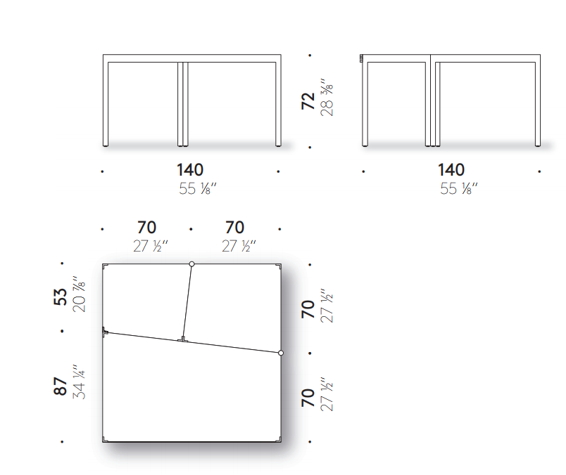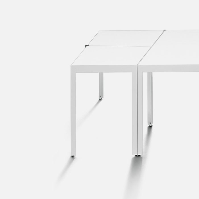 A mutable soul with a dynamic character. Campo D’oro is a table that modifies its shape to interpret different needs in the home. The project is just like these fluid, ever-changing spaces. When closed, the table is square in shape, but it opens to create new configurations and ultimately becomes a long trapezoidal surface. That’s why it is also the ideal solution for the office, a study and any place that needs flexible furniture able to satisfy the needs of a modern work force.