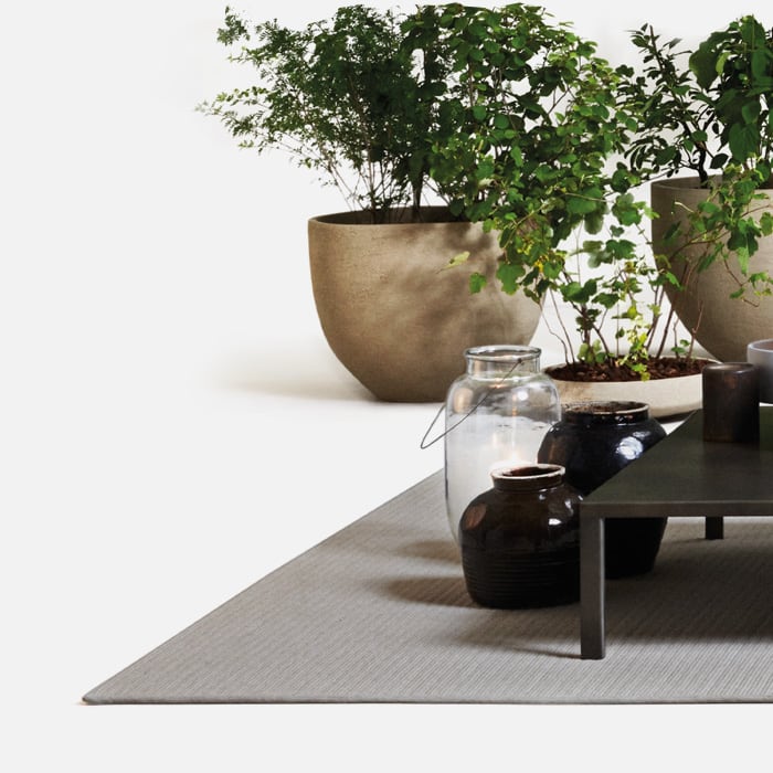 Rug suitable for outdoor use, made of OLYNA, a non-toxic, hypoallergenic material (conforms to STANDARD 100 by OEKO-TEX? class 1), resistant to mould and bacteria, 100% recyclable.