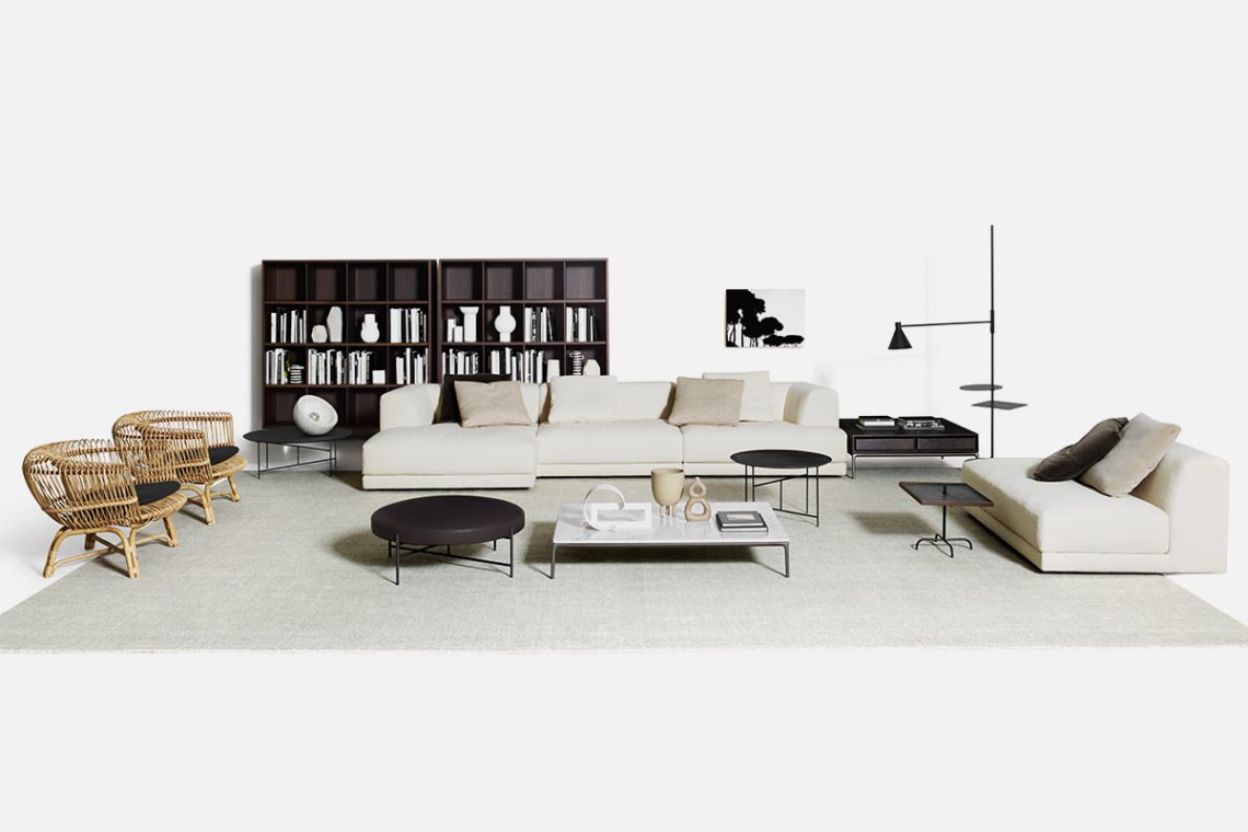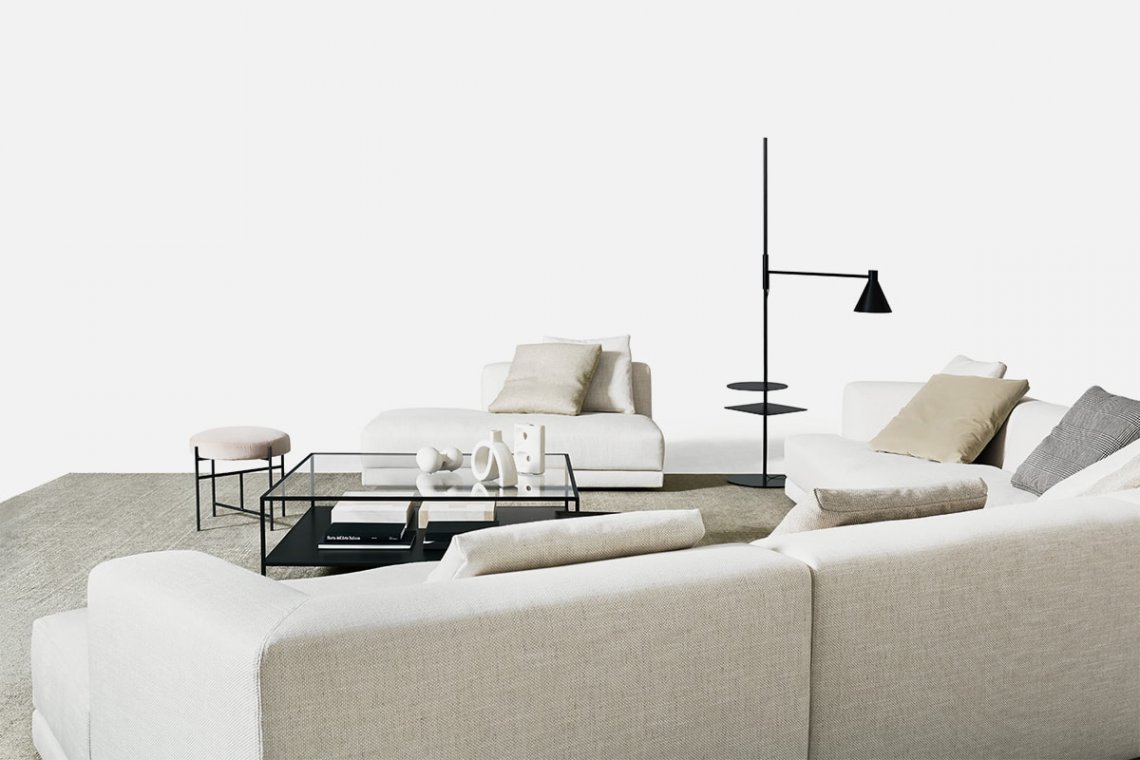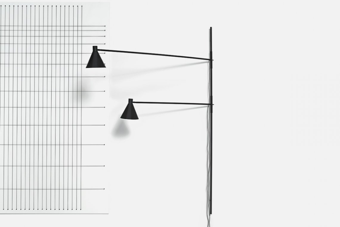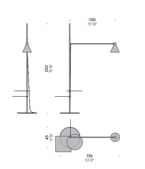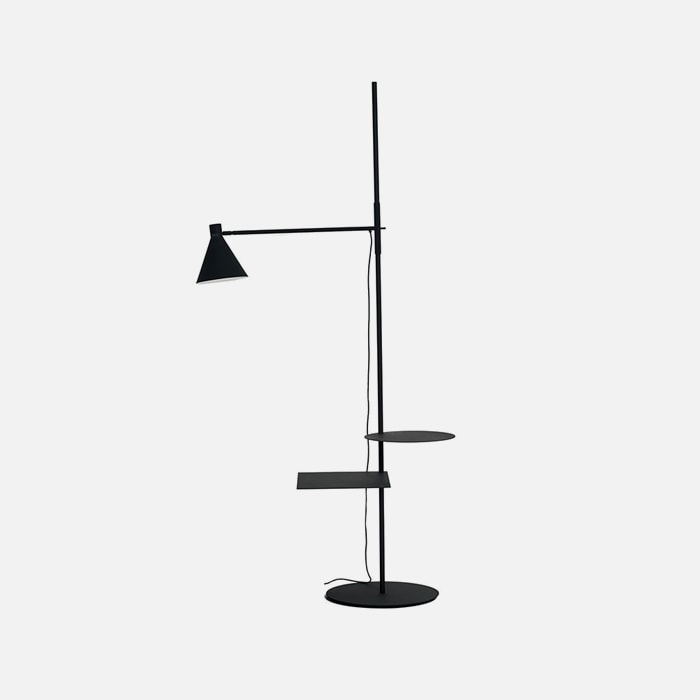 The graceful, balanced graphic line is by Elisa Ossino. Nota, in fact, is the lamp with a poetic yet functional design. The floor lamp has two small tables on the pole which can be used for holding a book or a cup of tea. The light source can be positioned wherever needed, leaving the cone of light open to personal interpretations of every space.