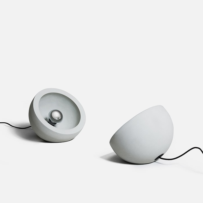 The perfection of a half sphere, the textural design and astral moods. The secret of the Tsuki table lamp by Japanese designer Naoto Fukasawa lies in its simple design and choice of materials. Available in Calacatta marble or light grey concrete, it is functional, efficient and discreet. It can be used alone or positioned in a series, creating striking cones of light.