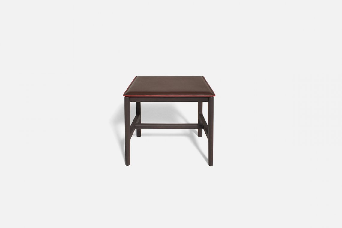 The same seams are found in the furnishing accessories such as the leather benches and trays.