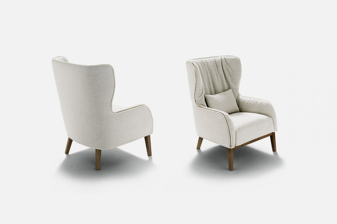 This reading armchair is a great classic given a contemporary update by talented designer Patricia Urquiola. The solid ash frame covered in fabric or leather is decorated with tonal or contrasting piping on the edges. The removable cover has a practical zipper that traces the lines of the back and armrests.