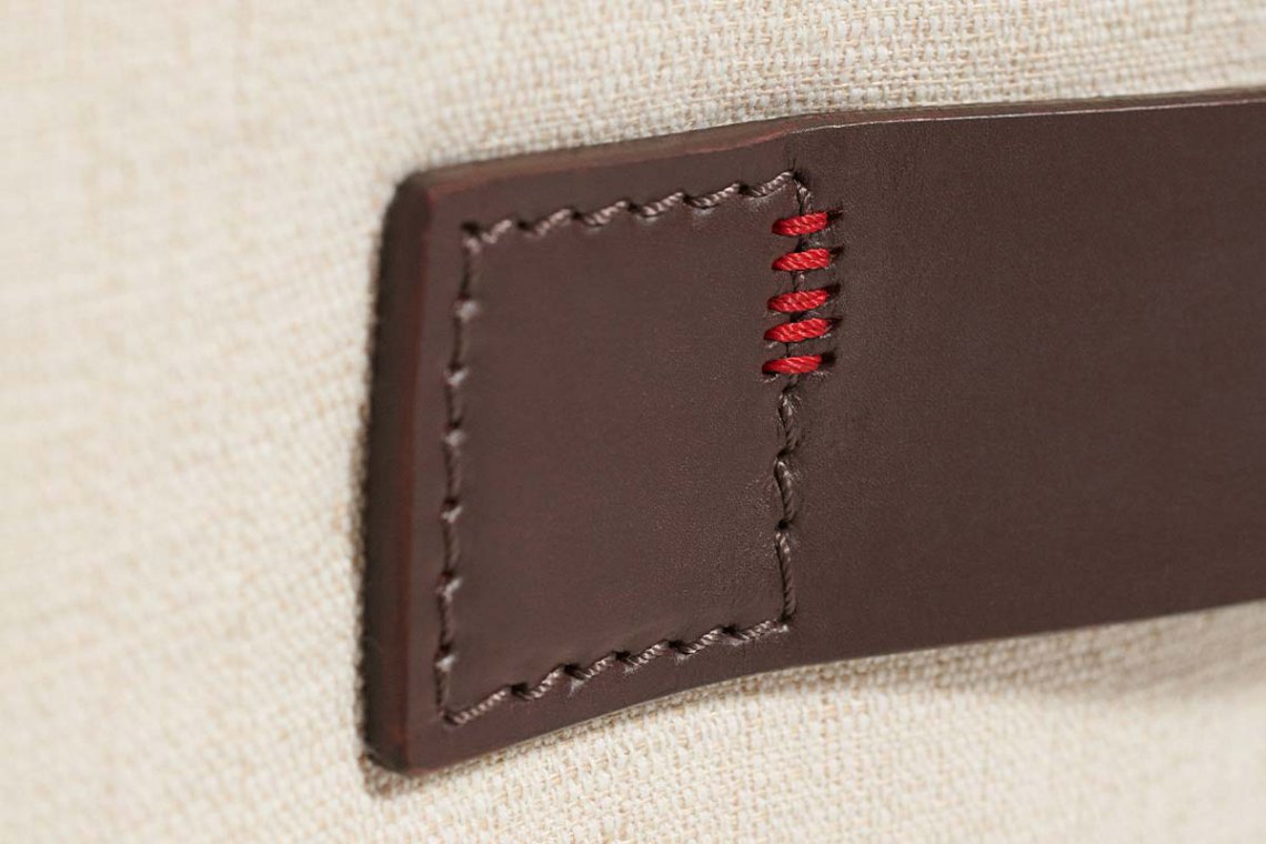 Sofas, armchairs and pouf are marked by contrasting stitching that evoke sartorial know-how.